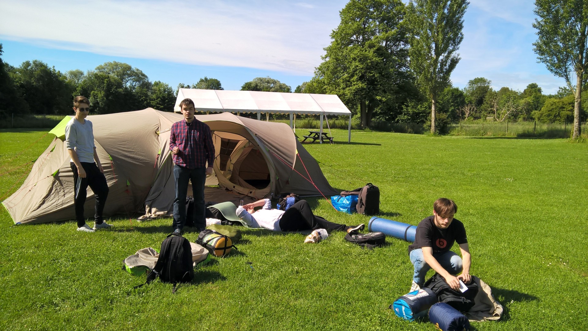 Nach der geschichtlichen Zeitreise mit diesem ernsten Thema wollten wir dann alle zu unserem Campingplatz am Ammersee, der sich südwestlich von München befindet. Dafür mussten wir aber nochmals eine knappe Stunde fahren. Dort angekommen stellten wir fest, dass wir eine komplette Zeltwiese für uns alleine hatten und platzierten uns in der Nähe des Waschhauses, welches direkt neben der Wiese stand. Wir Schüler teilten uns ein großes Zelt, während Frau Seibold-Cabot in einem Extrazelt in Reichweite von uns schlief und Herr Fischer es sich im Bus bequem machte. Für unsere Verpflegung am See sorgte hauptsächlich ein kleiner Pavillion, welcher Speisen und Getränke ausgab. Dort aßen wir auch zu Abend. Leckere Gerichte, wie ein Rahmschnitzel mit Kartoffeln oder ein Holzfällersteak, kamen auf den Tisch. Zum Verdauen machten wir einen kleinen Spaziergang entlang des Sees und gingen danach anschließend wieder zu unseren Zelten. In den Spätabend und die Nacht hinein unterhielten wir uns in unseren Zelten und schliefen, um für den Freizeitpark am nächsten Tag fit zu sein.