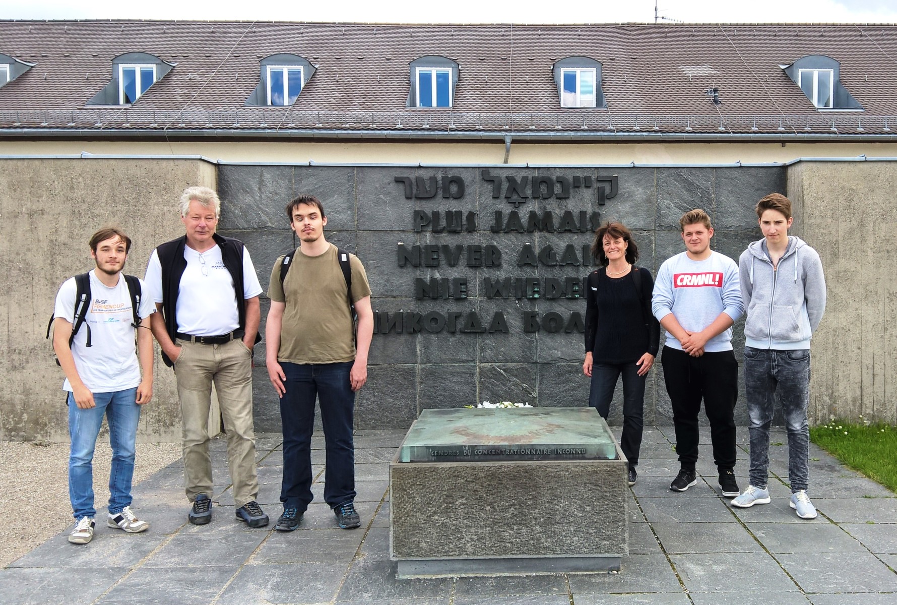 Die Gedenkstätte ist so groß, dass selbst die lange Führung nicht alles abdeken konnte. Als erstes mussten wir durch das Jourhaus gehen, dass das ehemalige Dienstgebäude der SS war. An dem dazugehörigen Tor steht noch heute der bekannte Spruch „Arbeit macht frei“. Von dort aus gingen wir in das ehemalige Wirtschaftsgebäude, in dem man eine Dauerausstellung, die Verwaltung der Gedenkstätte mit Archiv und Bibliothek, Seminarräume und auch Sonderaustellungen besichtigen konnte. Dahinter befand sich das ehemalige Lagergefängnis, in dem 136 Zellen untergebracht waren. Anschließend liefen wir über das gesamte Gelände. Insgesamt 34 Baracken hatten in Zweierreihe auf dem Gelände gestanden. Heute gibt es nur noch zwei von ihnen zu besichtigen. Über eine kleine hölzerne Brücke kamen wir dann in den Krematoriumsbereich. Zuerst gab es nur ein Ofengebäude mit zwei Öfen. Weil die Kapazität aber nicht ausreichte, baute man noch ein zweites Gebäude, welches sogar eine Gaskammer besaß. Es kam ein sehr beklemmendes Gefühl auf, als wir durch diese Räume gingen. Um wieder zurück auf den Appellplatz zu gelangen, auf dem sich die Gefangenen meist Stunden lang aufstellen mussten, liefen wir diesmal über die Lagerstraße, welche die zwei Reihen der Baracken teilte. Zuletzt schauten wir uns das Mahnmal vor dem Wirtschaftsgebäude an. Es soll einen Stacheldrahtzaun aus Leibern, deren Gelenke in alle Richtungen zeigen, darstellen.