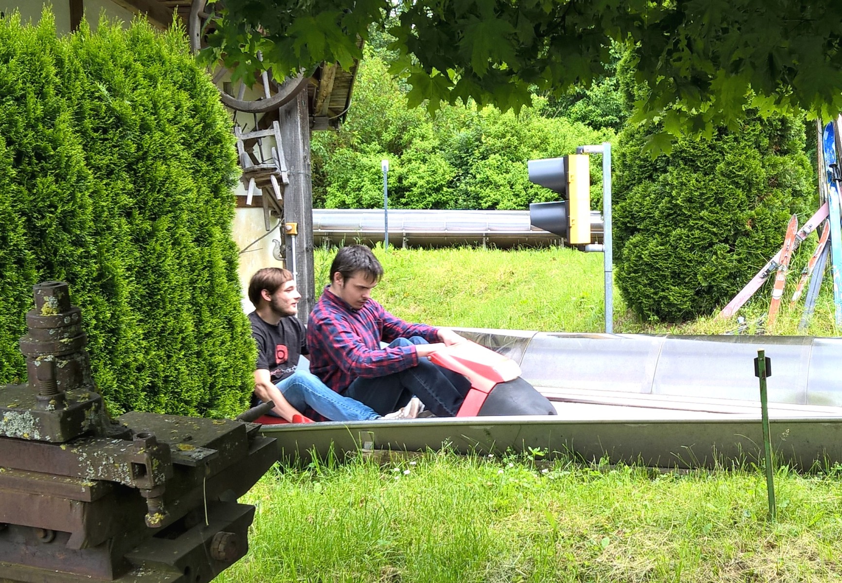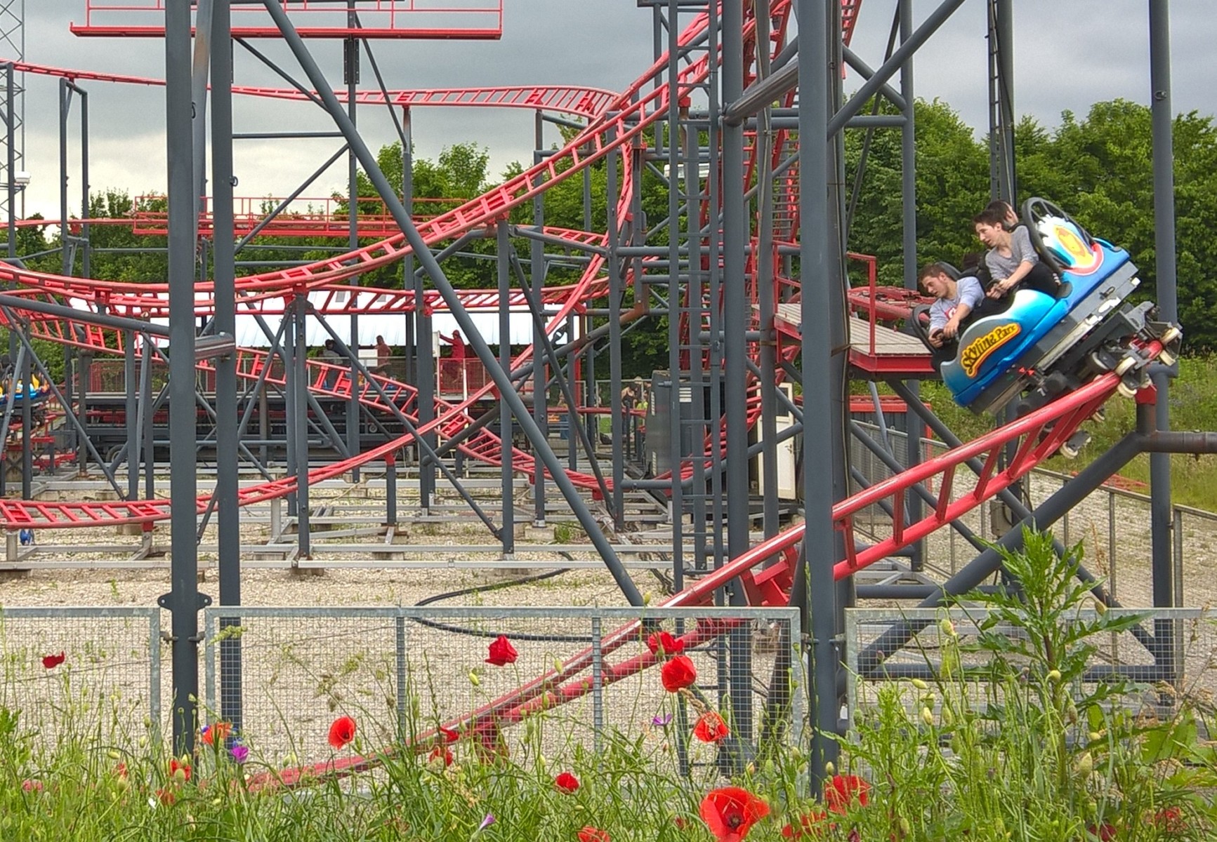 Am nächsten Morgen gegen 08:00 Uhr versuchte uns Frau Seibold-Cabot uns zu wecken, doch niemand hatte große Lust, aufzustehen und wir blieben noch eine Weile im Zelt liegen, während unsere Lehrer schon mal zum Pavillion gingen, um dort ihren Kaffee zu trinken. Als wir dann alle mal wach waren, gingen auch wir dort hin und frühstückten alle zusammen. Danach packten wir unseren Bus wieder mit den Campingsachen und fuhren nach Bad Wörishofen in den Skyline-Park. Schon als wir diesen betraten, ähnelte er einem sehr großen Spielplatz mit Attraktionen auf jeder Seite. Es gab sehr gute Fahrgeschäfte, wie zum Beispiel die Bobbahn oder eine Art Hängeachterbahn. Eine Stange hing an der der Laufschiene, während am unteren Ende vier Arme abgingen, an denen die Sitze befestigt waren. Damit fuhr man erst mit einer art Lift nach oben und hing anschließend an der Stange. Auch richtig adrenalinfreudig war die Achterbahn namens Sky Wheel. Die Highlights hier waren die 90° Grad-Steige sowie die Überkopfschraube am oberen Teil der Bahn. Nach unserem Parkbesuch fuhren wir wieder zurück in unsere Heimat. Doch wie es das Schicksal möchte – einem Stau konnten wir auf der Rückfahrt leider nicht ausweichen.