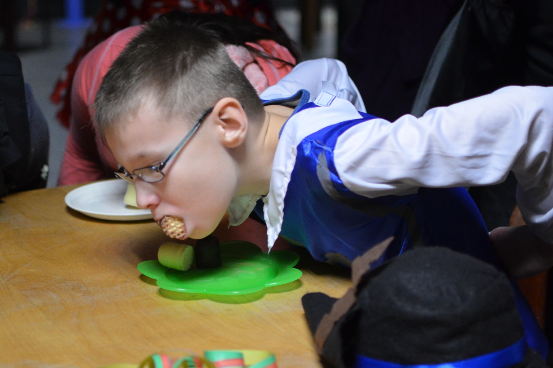 durfte ausgelassen getanzt und mitgesungen werden. Durch das Losverfahren wurde ermittelt, wer auf die selbstgebastelte Pinata einschlagen und somit Süßigkeiten für alle ergattern konnte. Auch in diesem Jahr wurden die drei schönsten Kostüme ermittelt und die glücklichen Gewinner und Gewinnerinnen mit kleinen Preisen belohnt. Den Abschluss des tollen Nachmittags bildete eine Polonaise durch die Internatsgruppen, bevor die Feiergesellschaft sich auflöste und jeder wieder auf seine Gruppe ging.