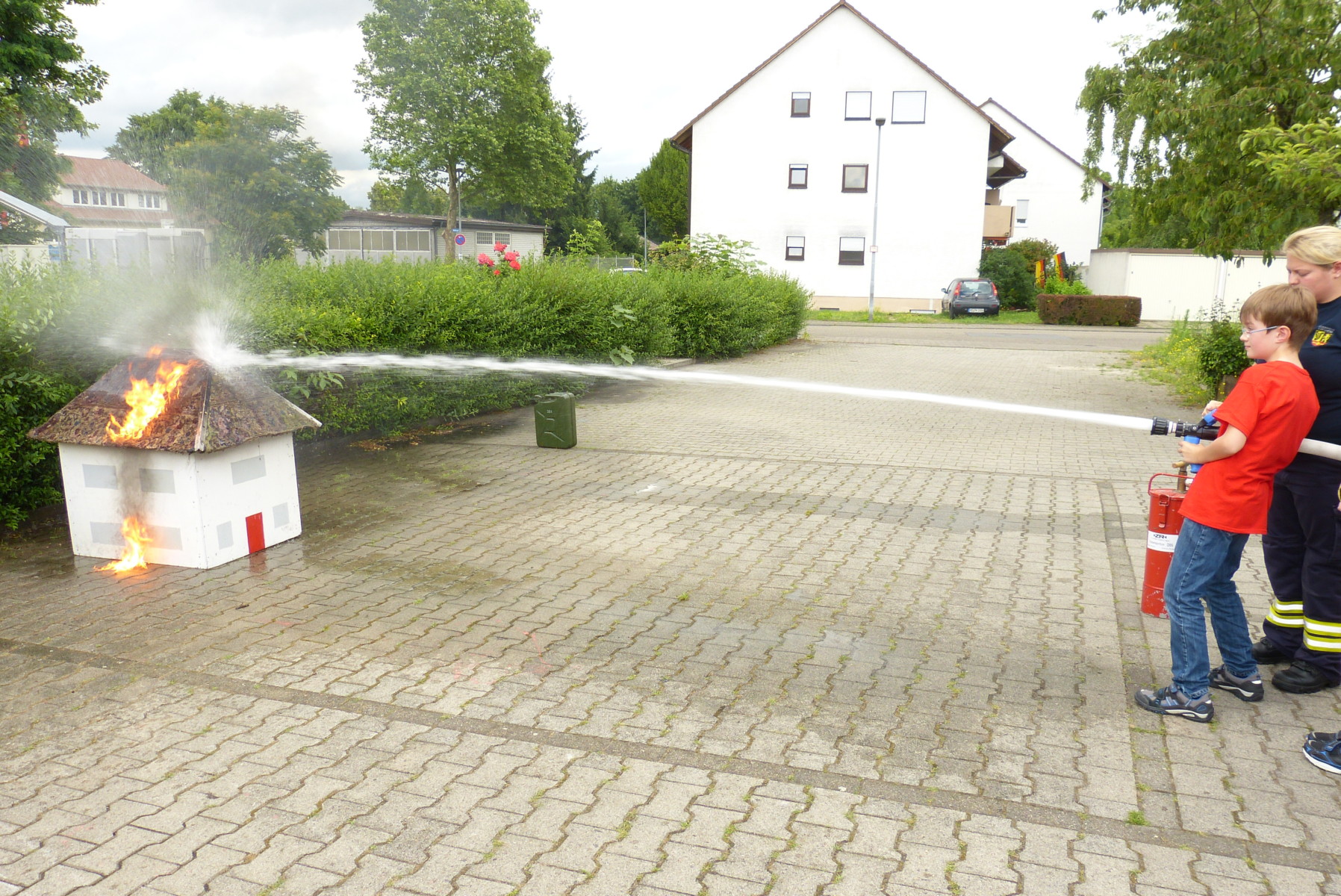 Die Tanja von der Feuerwehr aus Ilvesheim hat uns, der Klasse G 1-3, die Ausrüstung der Feuerwehr gezeigt. Wir durften den Feuerwehrhelm aufsetzen. Wir duften ein Spielhaus löschen.