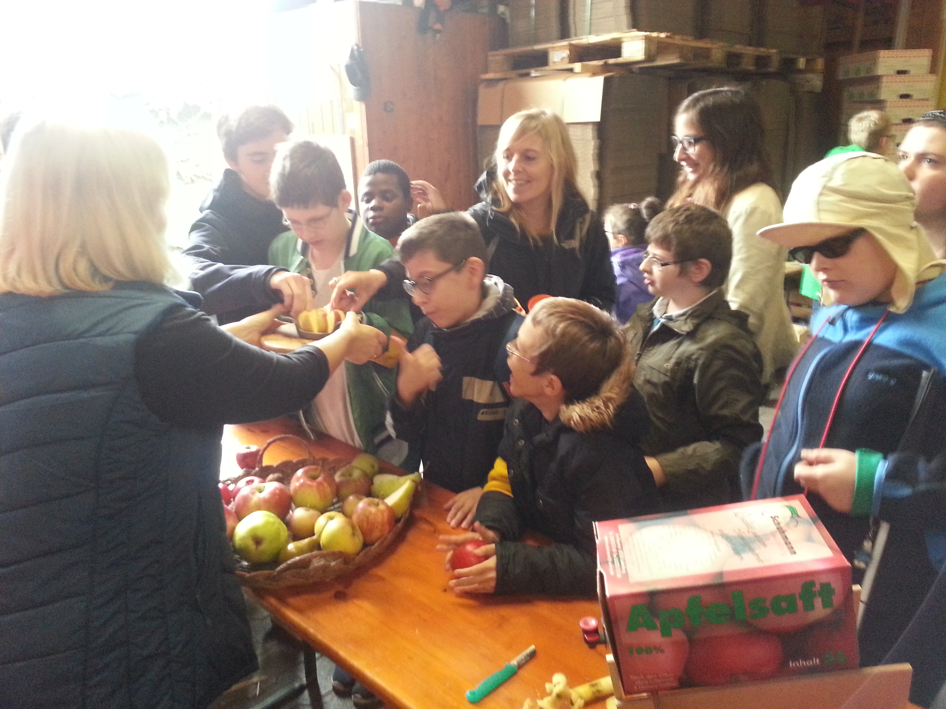 Wir sind auf ein Apfelhof. Wir haben Teile angeguckt wie wächst der Apfel und die Blätter. Wir haben verschiedene Äpfel ausprobiert. Alle haben unterschiedlich geschmeckt. Wir durften auch Apfelsaft probieren. Da hatten wir auch Kürbisse gesehen, manche Kürbisse waren klein oder groß. Dann hat die Frau gesagt, die Äpfel haben unterschiedliche Namen. Eine Sorte hat sie gesagt, das ist Pink Lady. Dann haben wir einen kleinen Laden gesehen, da waren Äpfel verpackt. Da war es kalt, das war im Kühlhaus. Ich habe einen Gabelstapler gesehen und es hat ganz arg geregnet. Dann sind wir gegangen. Wir haben Tschüss gesagt. Dann haben wir den Bus genommen. Dann sind wir wieder in die Schule gekommen.