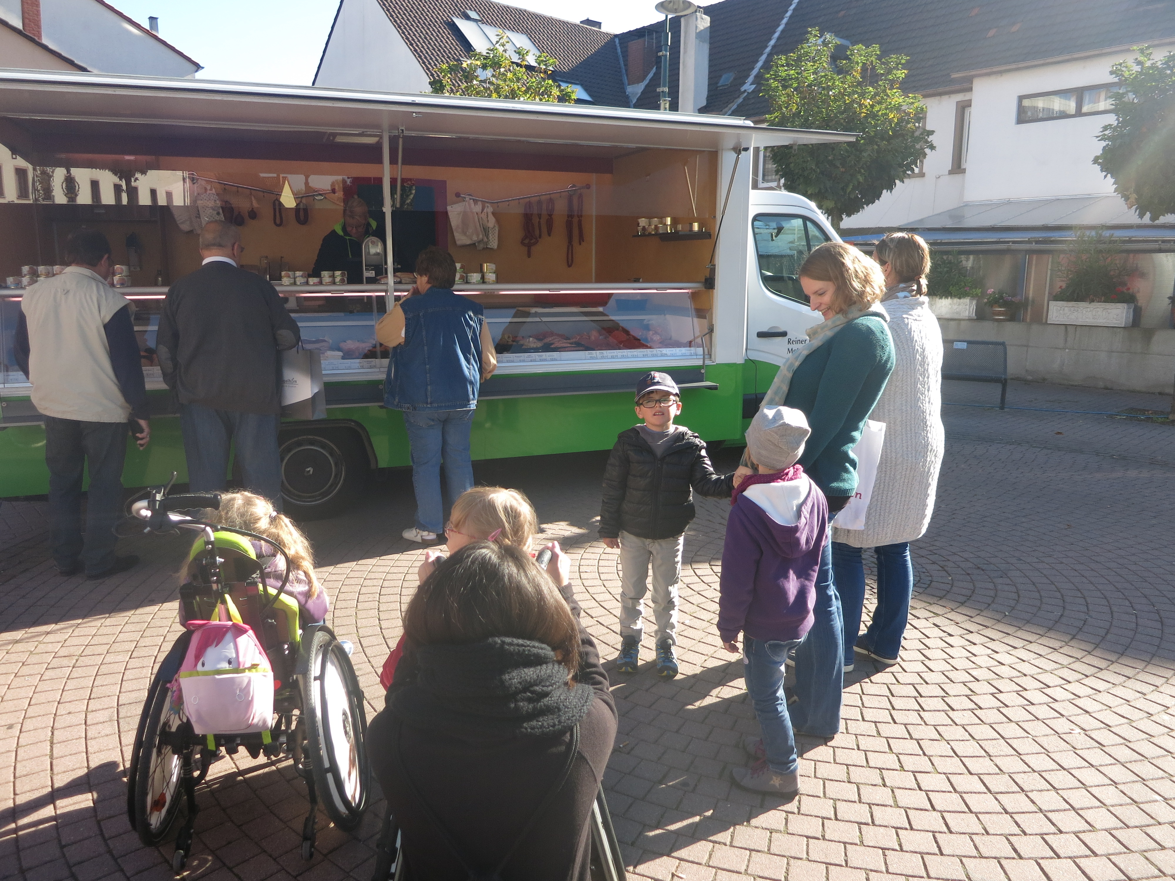 Nach 5 Minuten Fußweg erreichten wir den Markt und mussten leider feststellen, dass der Obst- und Gemüsestand wegen des Feiertages gar nicht da war. Es gab nur ein Wurststand.