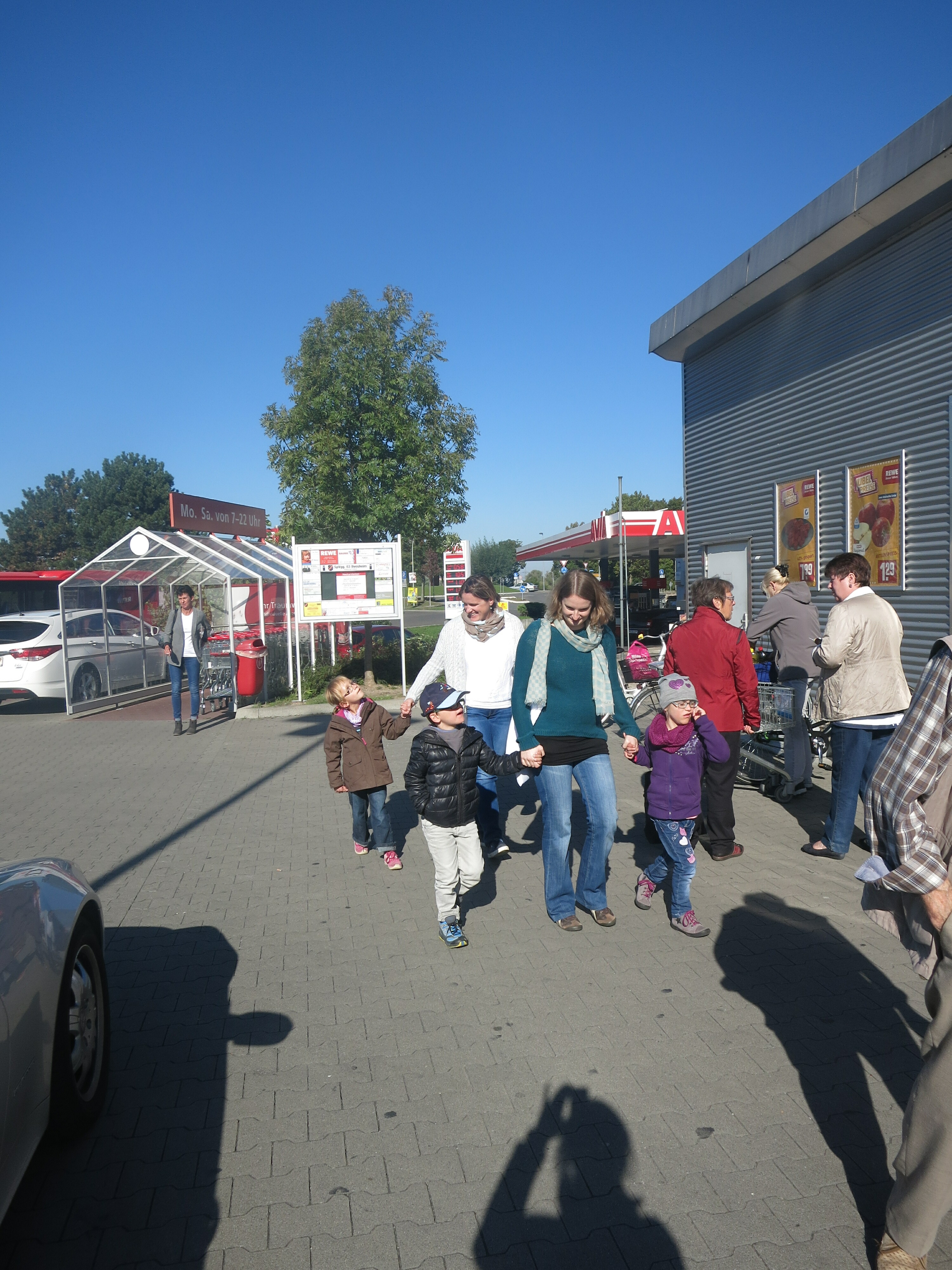 Also liefen wir kurz entschlossen zum Rewe. Dort hatten wir eine riesen Auswahl an roten,gelben und grünen Äpfel. Nachdem sich jeder einen Apfel ausgesucht hatte, sind wir noch