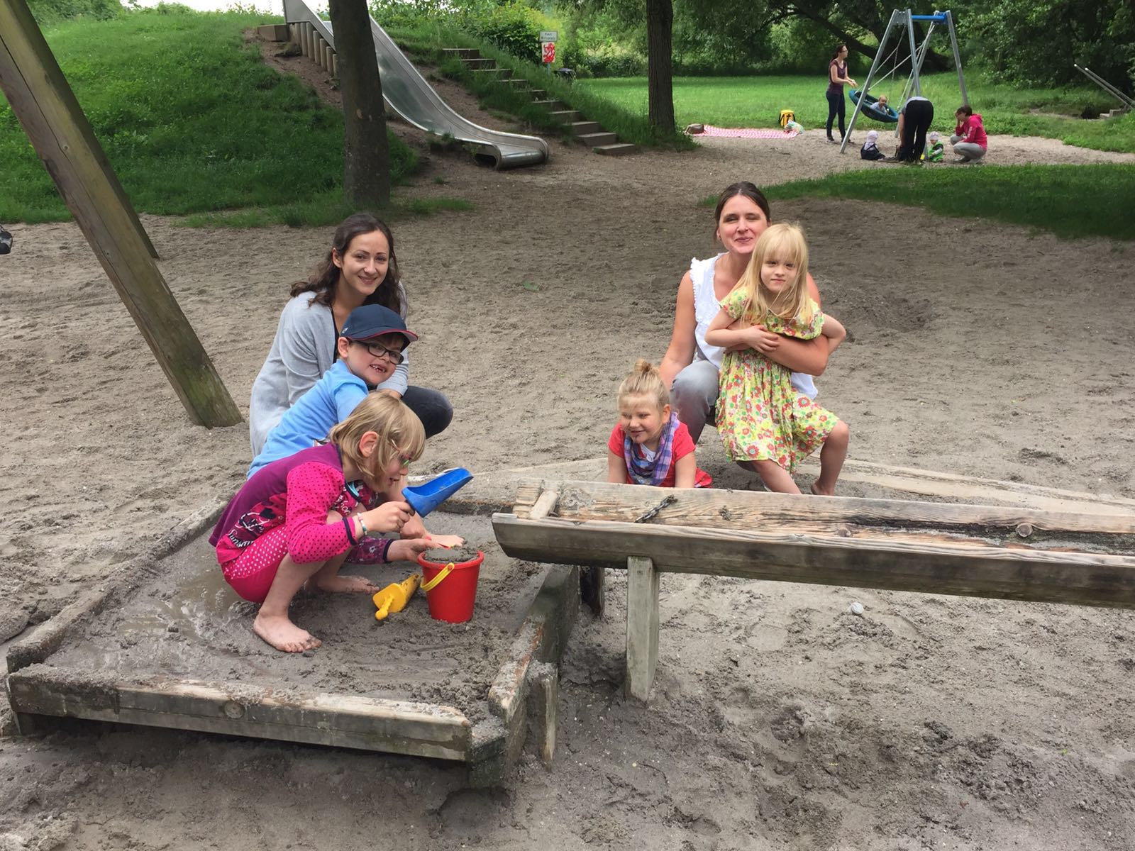 Alexandra nahm mit anderen Kindern, die zeitgleich den Spielplatz besuchten, Kontakt auf und es entwickelten sich Gespräche und neue Spielpartner wurden gefunden.