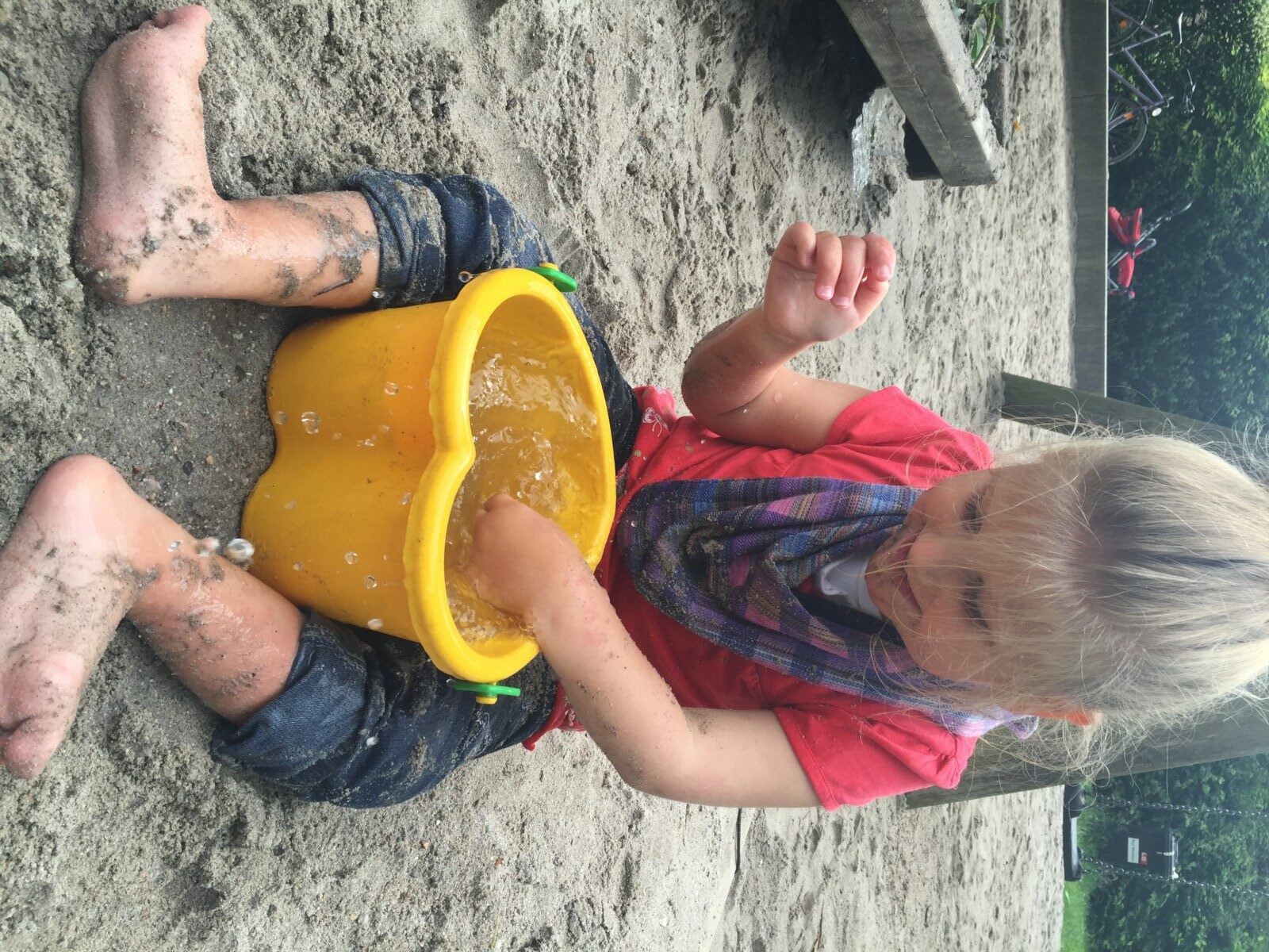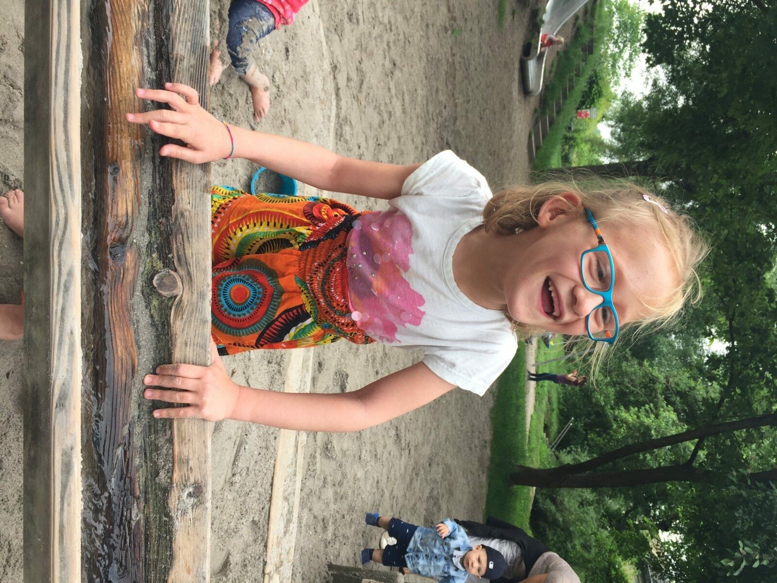 Floriane war so vertieft in ihre Arbeit, mit Sand und Wasser zu matschen, dass sie gar nicht mehr aufhören wollte.