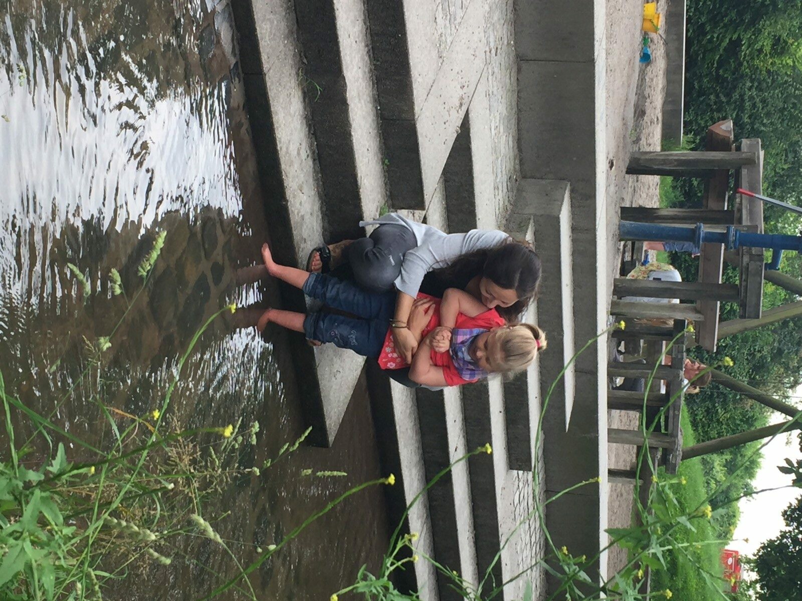 Maja überwand ihre Angst und balancierte über die Wasserrinne, toll!