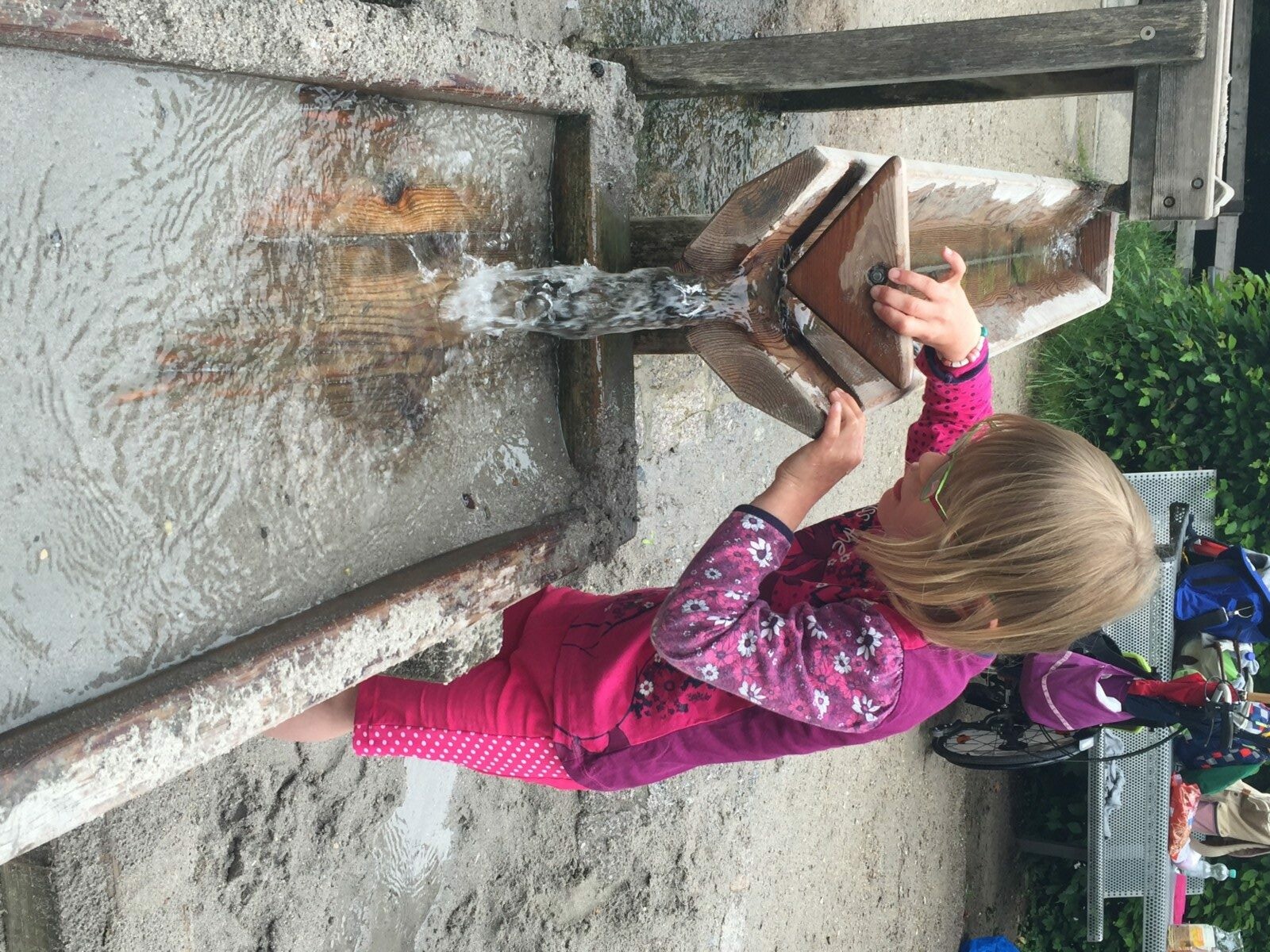 Die Schüler fingen sofort an den Spielplatz zu erkunden. Natürlich stand das Element Wasser im Fokus und es war faszinierend zu beobachten, wie die Kinder sich diesem näherten: Forschend, handelnd und aktiv!