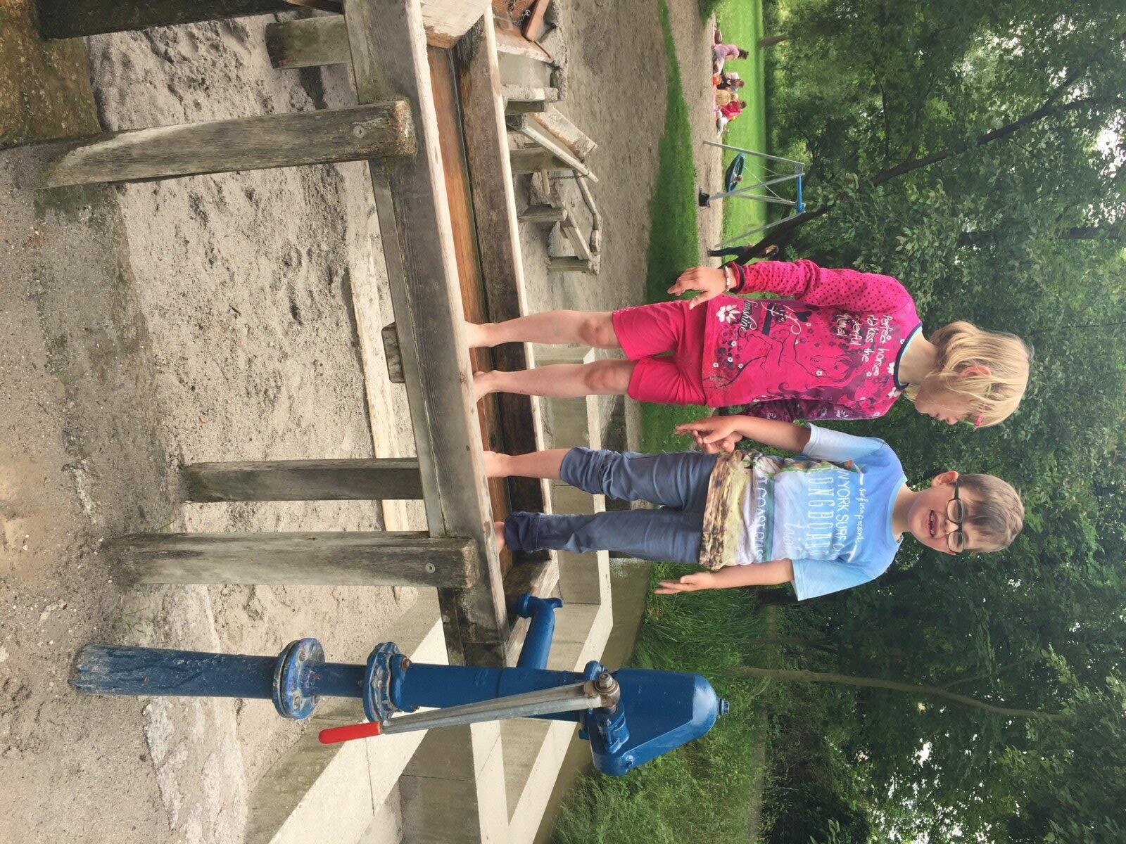 Besonders interessant fand Leonie die Wasserpumpe und auch die Erfahrung, dass sie Ausdauer aufbringen muss, um eine gewisse Wassermenge für die im Sand wartenden Mitschüler zu pumpen.