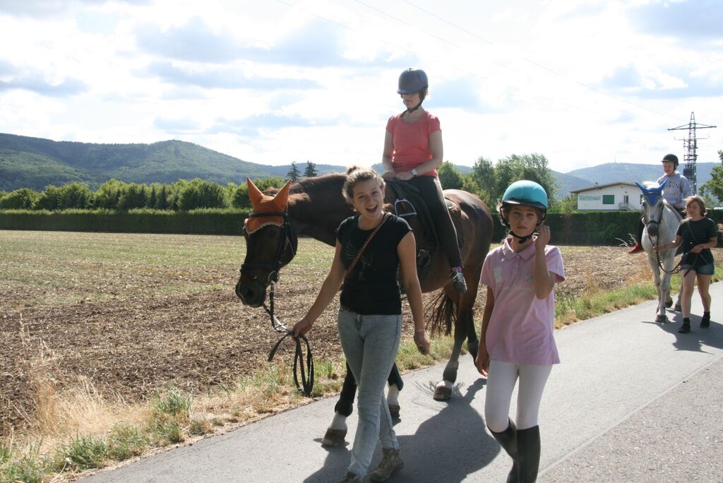 Das letzte Wochenende vor Sommerferienbeginn verbrachten sieben blinde und sehbehinderte Schülerinnen und Schüler wieder mit sehenden Kindern und Jugendlichen gemeinsam – und hatten dabei nicht nur beim Reiten jede Menge Spaß … Am Freitagmittag wurden wir mit drei Autos zum Leimener Gemeindehaus gefahren. Eigentlich sollte es dort eine Anfangsrunde geben, allerdings kamen wir überhaupt nicht dazu: Zuerst war der eigentlich für das Treffen bestimmte Raum belegt, sodass wir erstmal in einen anderen Raum umziehen mussten, dann dauerte es so lange, bis alle da waren – und als dann alle da waren, mussten wir uns schon auf den Weg zum Birkenhof nach Dossenheim machen. Dort angekommen, lernten wir die Pferde kennen, indem wir sie von der Weide führten und putzten, und holten unsere Anfangsrunde nach. Später kam Herr Groß, der Pfarrer der Leimener Gemeinde, zu Besuch, um mit uns gemeinsam den kommenden Gottesdienst zu gestalten. Da wurde eifrig diskutiert – über den Umgang mit Blinden und Sehbehinderten, über den Krieg in anderen Ländern, über Gewalt und Kriminalität, darüber, dass man jeden Menschen so akzeptieren soll, wie er ist – und es gab noch viel, viel mehr. Außer dem wirklich sehr interessanten Gespräch überlegten wir uns in kleinen Gruppen Fürbitten und planten alles Weitere.