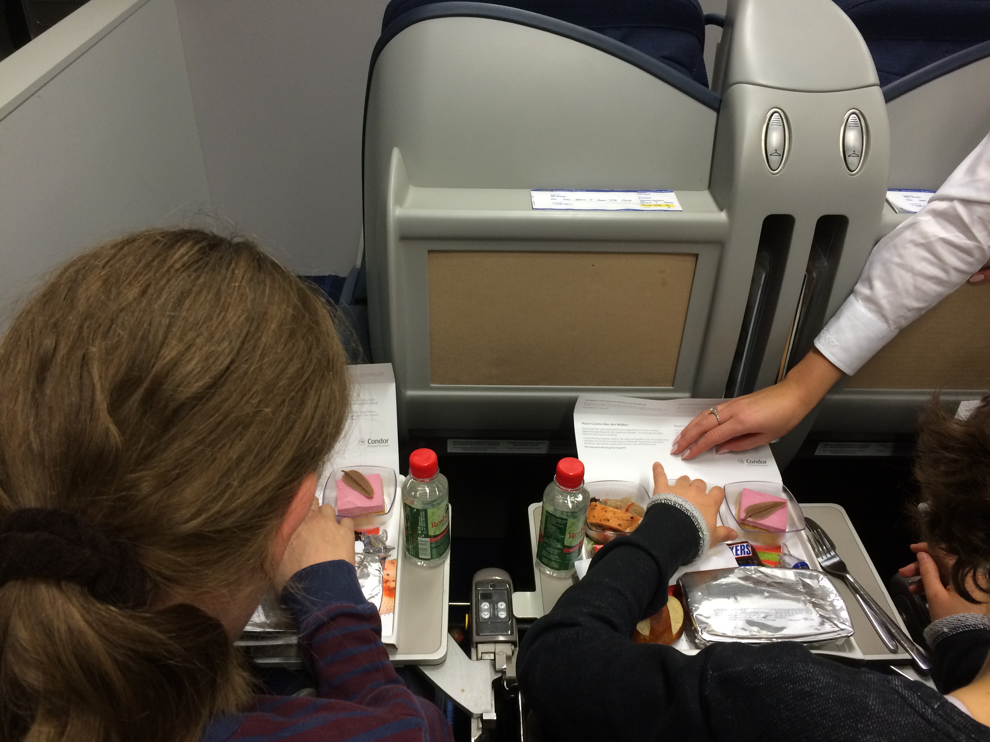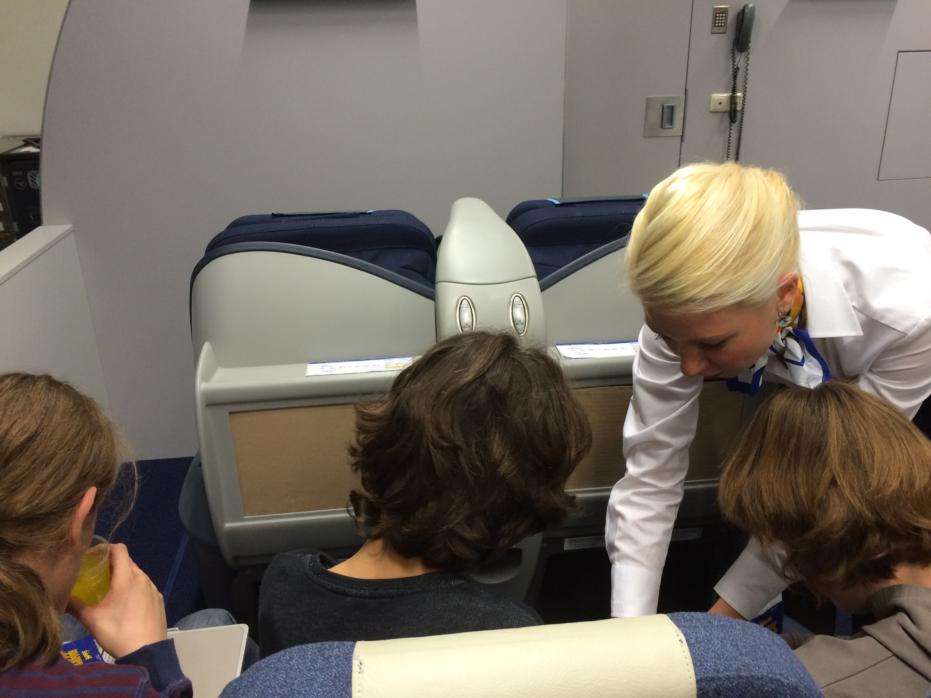 Die erste Hürde entwickelte sich gleich nach dem „Einsteigen“: Das Anschnallen. Das ist nämlich kein normaler Gurt wie im Auto, sondern etwas anders. Zum Glück bemerkten die Flugbegleiter die Probleme und halfen uns großzügig.
