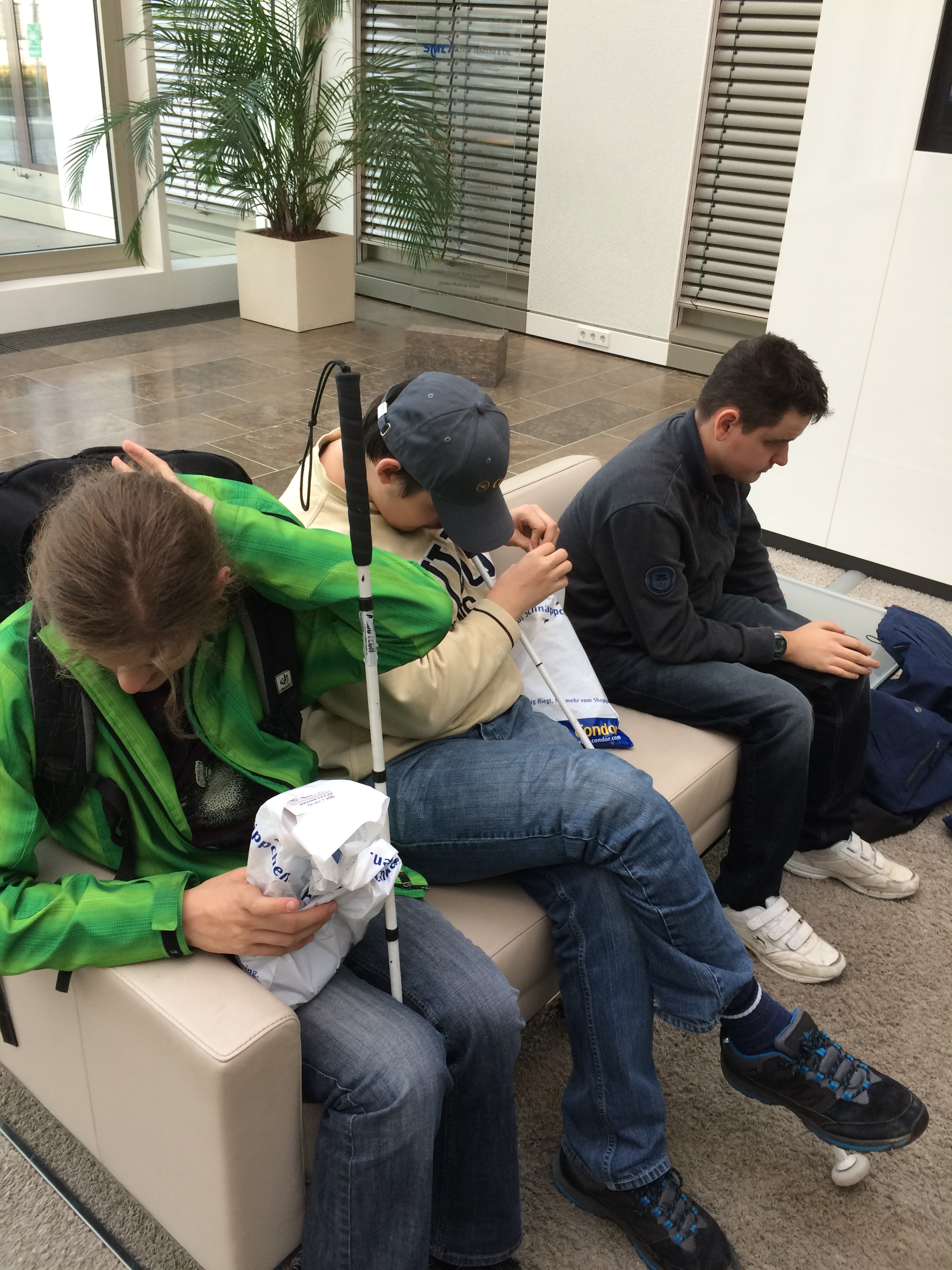 Am Dienstag, den 27. Oktober 2015, fuhren sechs blinde Schülerinnen und Schüler nach Frankfurt, um den Flugbegleitern der Fluggesellschaft Condor Tipps zum Umgang mit blinden und sehbehinderten Menschen zu geben.