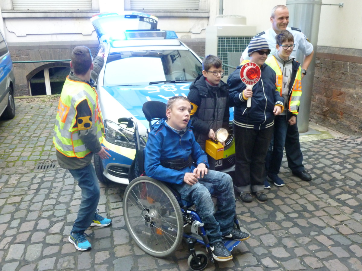 Am Mittwoch haben wir den  Besuch bei der Polizei und sind bei der Bushaltestelle  und mit der Straßenbahn und danach  Bus gefahren.  Der Herr Schmitt hat uns in der Polizeiwache abgeholt.  Ich habe das Polizeilicht   angemacht und ich habe auch die Zelle mit dem Schlüssel aufgeschlossen.