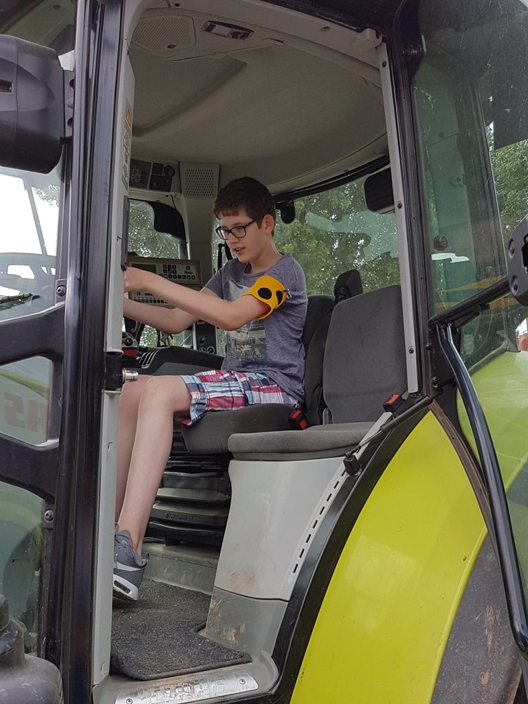Danach waren wir bei den Schweinchen. Der Sascha hat die Schweinchen gefüttert. Wir durften sogar auf den Traktor und Anton durfte den Traktor anschalten.