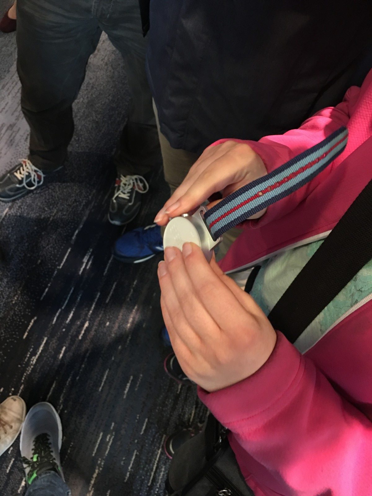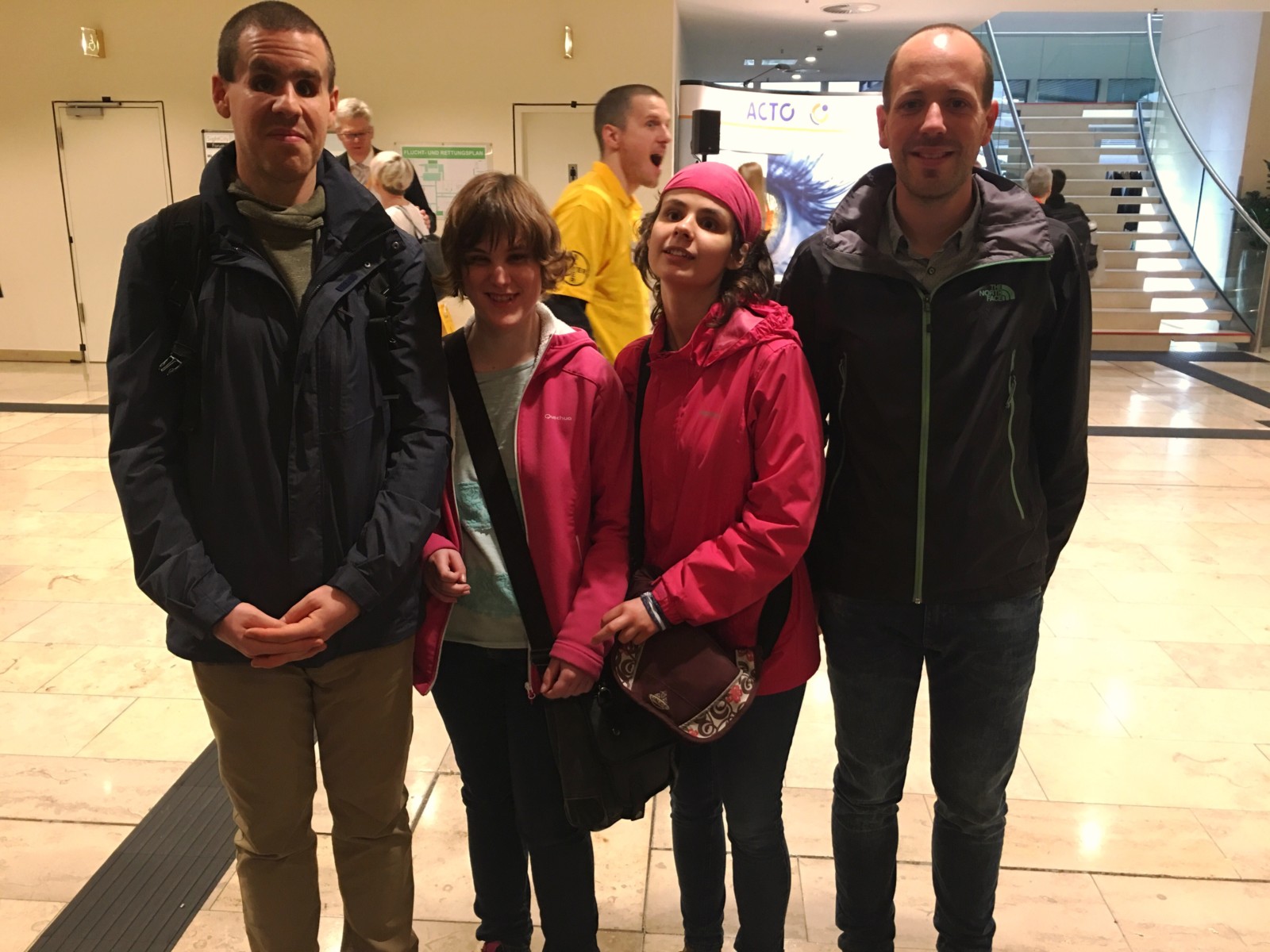 Zum Schluss bekamen wir den Braille Music Editor erklärt. Das ist ein Computerprogramm, welches in Blindennotenschrift geschriebene Musiknoten in Schwarzschriftnoten umwandelt, sodass sehende sie auch lesen können. Möglichkeiten, Schwarzschriftnoten in Blindennotenschrift umzuwandeln, gibt es zur Genüge, doch wenn man Braillenoten in Schwarzschriftnoten übersetzen möchte, ist dieses Programm die einzige Möglichkeit. Während der gesamten SightCity begegnete uns immer wieder ein System, welches uns auf die Idee brachte, so etwas in unserer Schule selbst einzurichten und zu testen. In einer speziellen Eventversion der App „Blindsquare“, die Bushaltestellen, Kreuzungen, Geschäfte und einiges mehr ansagt, probierte der Hersteller ein Indoor-System aus. Dieses funktioniert über sogenannte Beacons. Diese sind im ganzen Gebäude verteilt und funktionieren per Bluetooth. Wenn man nun irgendwo im Gebäude die Event-App von „Blindsquare“ startet, kann man sich verschiedene Informationen zu seiner Umgebung ansagen lassen. Beispiel: „In diese Richtung führen zwei Treppen nach oben zur Rezeption. In der Mitte befindet sich der Aufzug. Links neben der Treppe befinden sich der Infostand für das SightCity-Forum und danach die Damentoiletten, rechts neben der Treppe die Garderobe und danach die Herrentoilette.“ Dieses System wirkte für uns alle im Großen und Ganzen recht ansprechend. Und dann war es schon fast 18.00 Uhr und so fuhren wir zurück in die Schule. Wir konnten viele interessante Sachen kennenlernen und es war zwar anstrengend, aber auch sehr spannend.