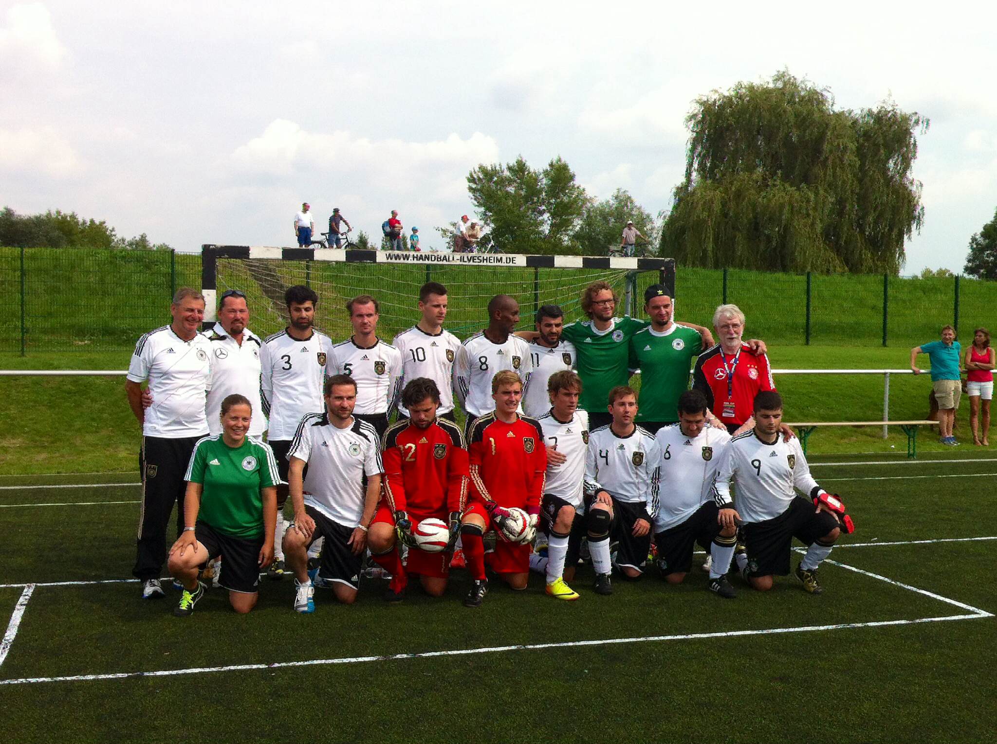 Beim 60. Inselcup in Ilvesheim (internationales A-Jugend-Turnier), veranstaltet durch die SPVVG Ilvesheim, trafen im Rahmen eines Schauturniers die Nationalmannschaften im Blindenfußball von England und Deutschland aufeinander. Für sie eine gute Vorbereitung für die WM im Herbst. Für den Verein und die Gemeinde eine tolle Möglichkeit, einerseits ihre Verbundenheit zur Schloss-Schule und andererseits die Facetten des Fußballs zu zeigen. Das Länderspiel am Samstag war ausgesprochen spannend und die beiden Mannschaften zeigten auf einem hohen Niveau ihr Können. Zahlreiche Zuschauer kamen extra zu dem Turnier, um dieses Spiel zu sehen und zeigten sich begeistert. Knapp endete es mit 1:1; zwei verschossene 8-Meter-Schüsse verhinderten den Sieg des deutschen Teams.