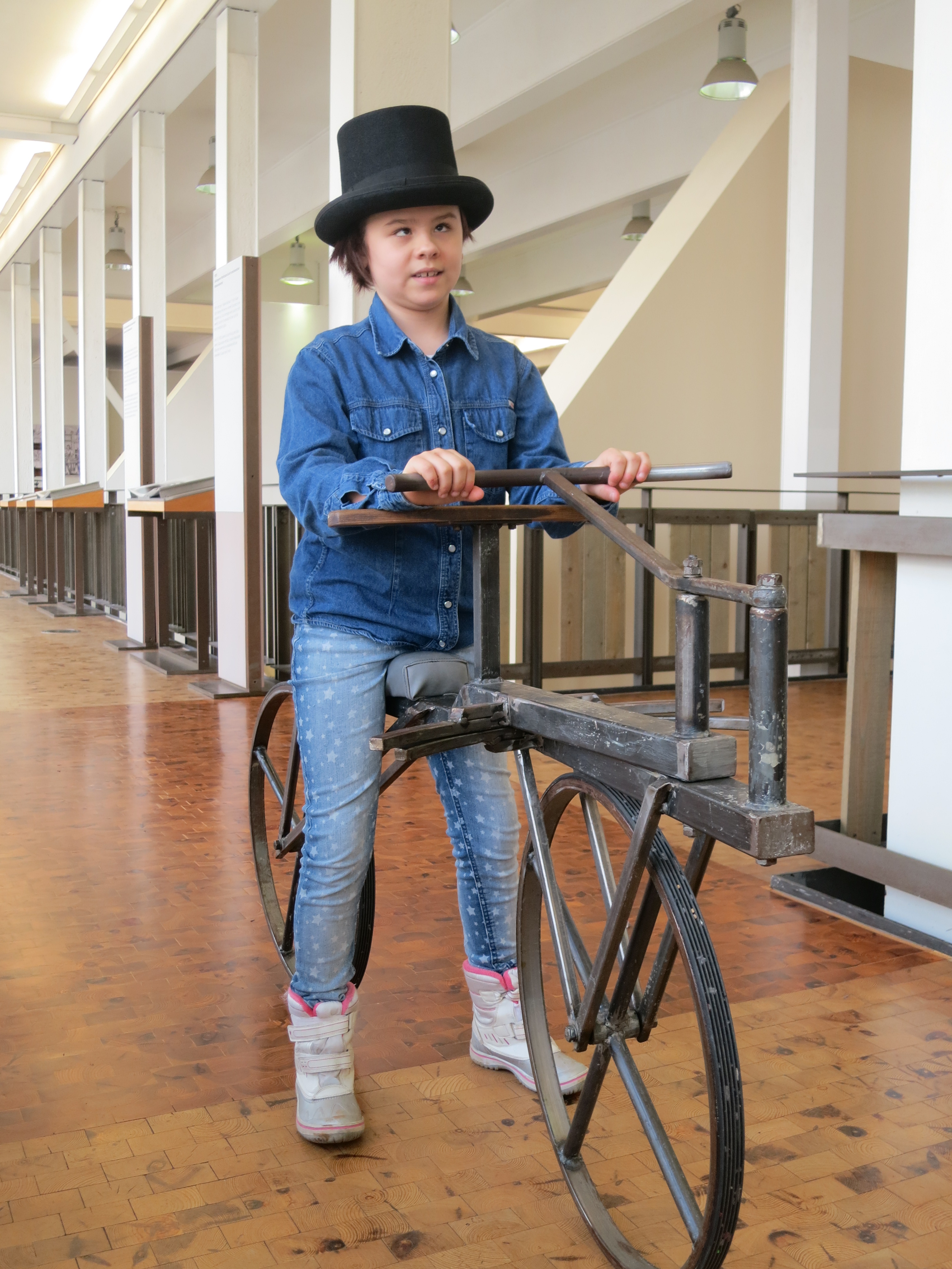 Die Draisine (Laufrad) war einfach krass. Man durfte einen witzigen Hut beim Fahren aufsetzen. Und sie war schwer zu fahren, weil das Lenken nicht so einfach war und man leicht umgekippt ist. Wir haben sogar ein sich drehendes Wasserrad gesehen. Die Führung ging leider nur eine Stunde und 15 Minuten. Das war zu kurz. Viel zu kurz, weil es da noch ganz viele Sachen zu besichtigen gab und wir leider keine Zeit mehr hatten.