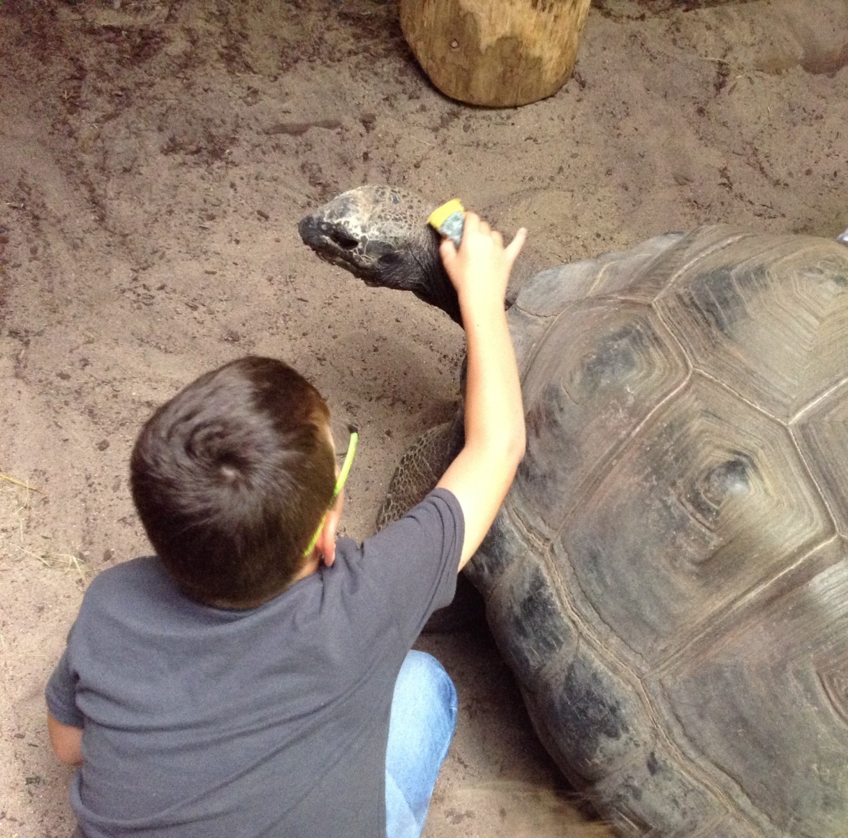Nachdem wir die Regeln besprochen haben, wie man sich im Zoo verhält, durften wir in das Gehege der Schildkröten.