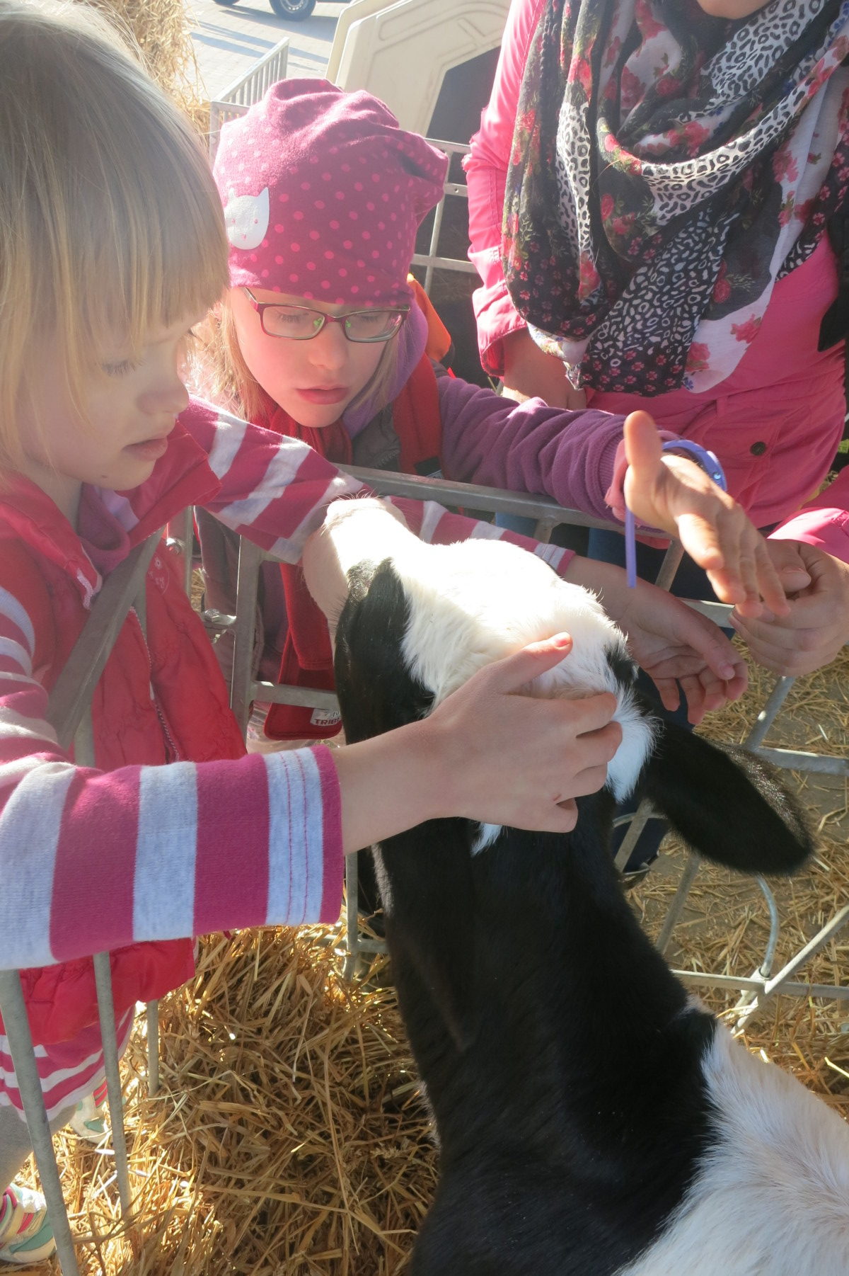 Im Rahmen des Themas „Bauernhof“ hatten insgesamt sechs Schülerinnen und Schüler der Grundstufe der Blindenschule in Ilvesheim in dieser Woche das besondere Erlebnis über 80 Kühen, fast 10 Kälbchen, aber auch dem Shetlandpony „Elli“ vom benachbarten Reitstall Schmitt, sowie zahlreichen Hühnern der Familie Wolf, gegenüber zu treten, sie zu streicheln, zu füttern sowie ihre Lebensgewohnheiten kennenzulernen.