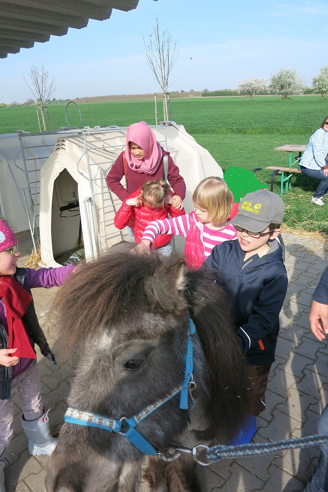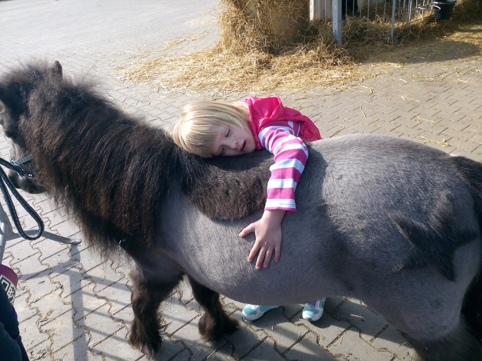 Das Shetlandpony Elli lud nach der Frühstückspause zu einer großen Streichel- und Kuscheleinheit ein, die wir alle mit Ausdauer für ein intensives Kennenlernen nutzten.