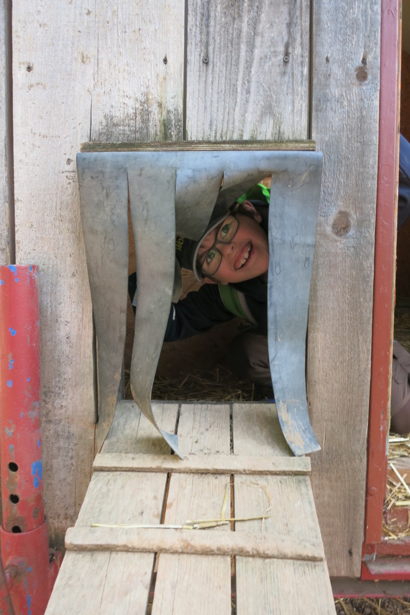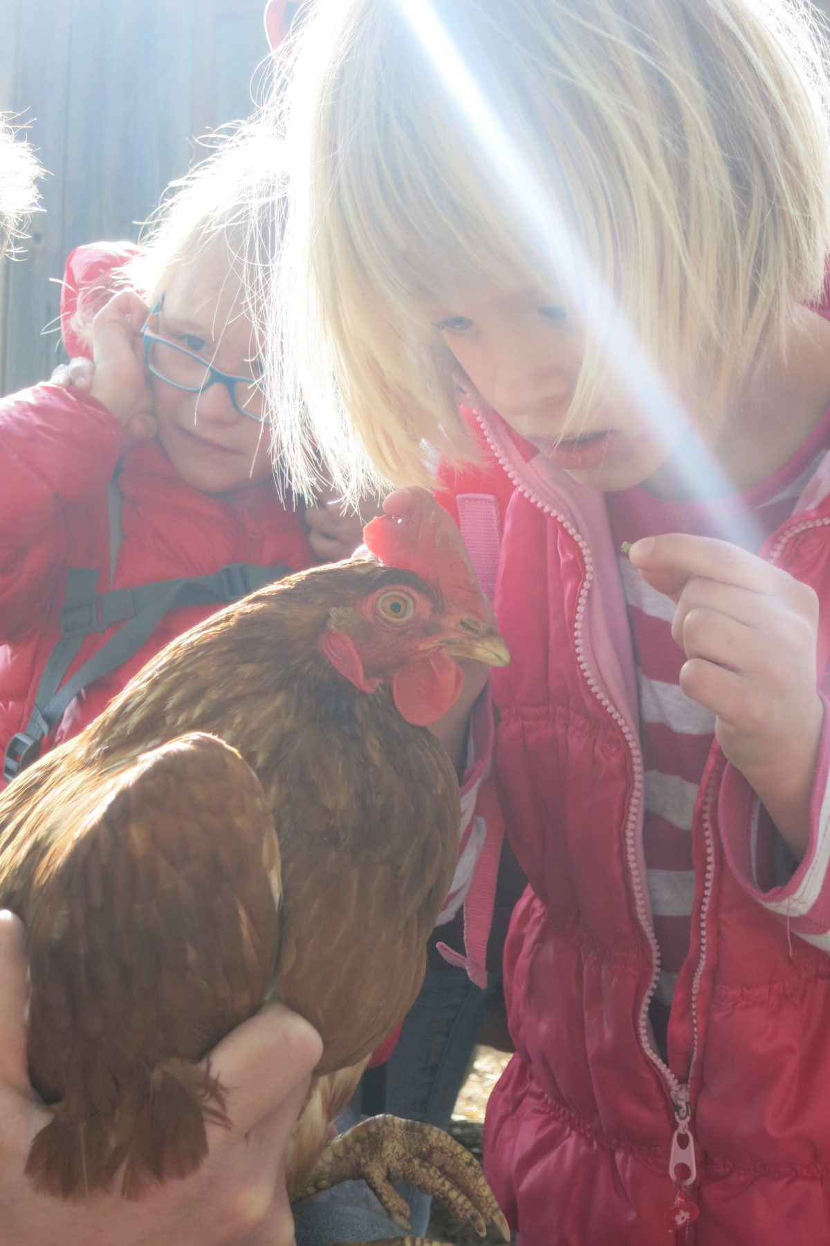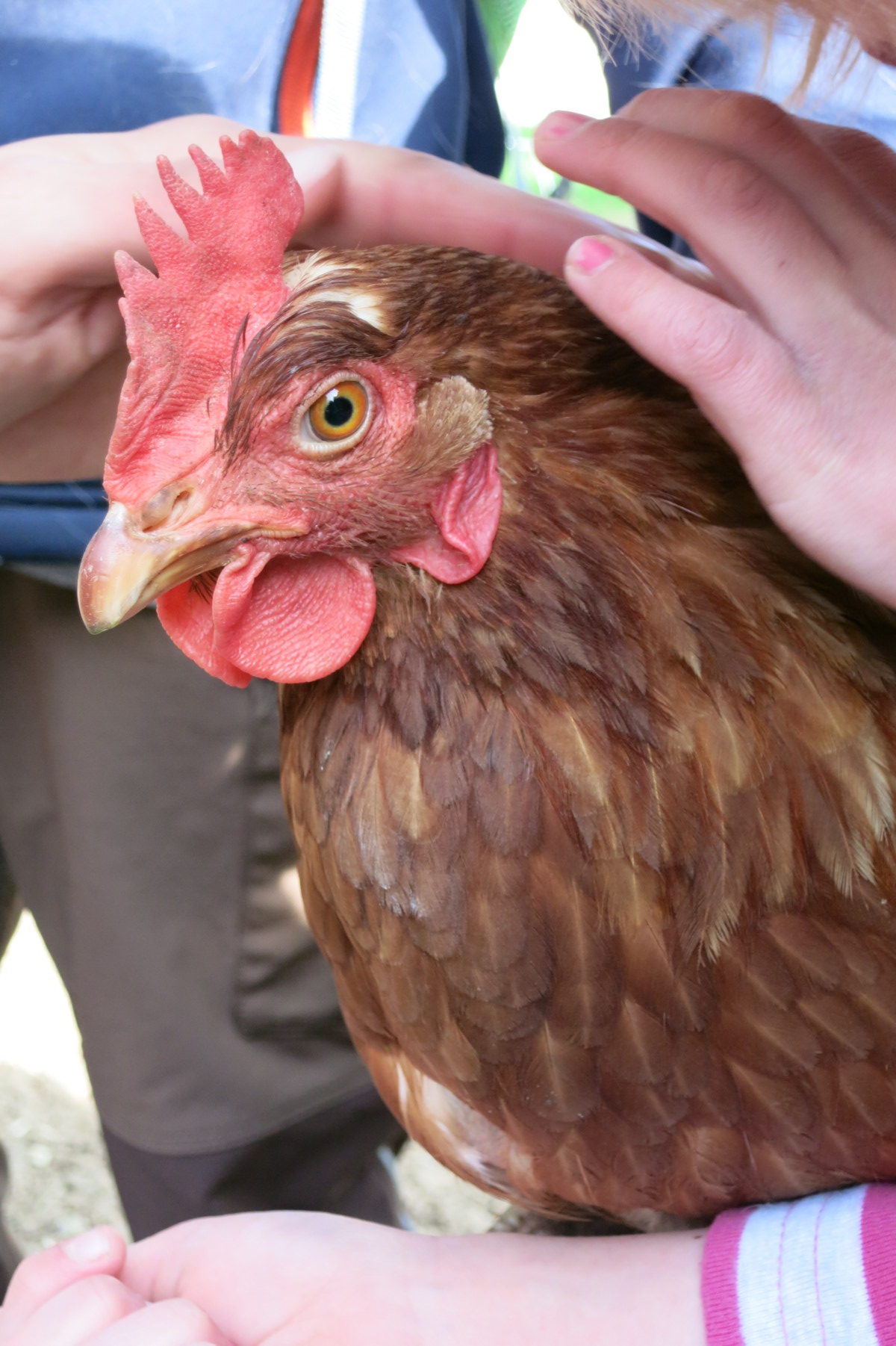 Aber als wir dann ein Huhn eingefangen hatten, konnten wir es aus nächster Nähe betasten und betrachten.