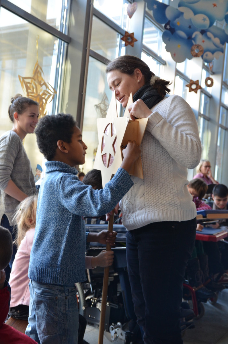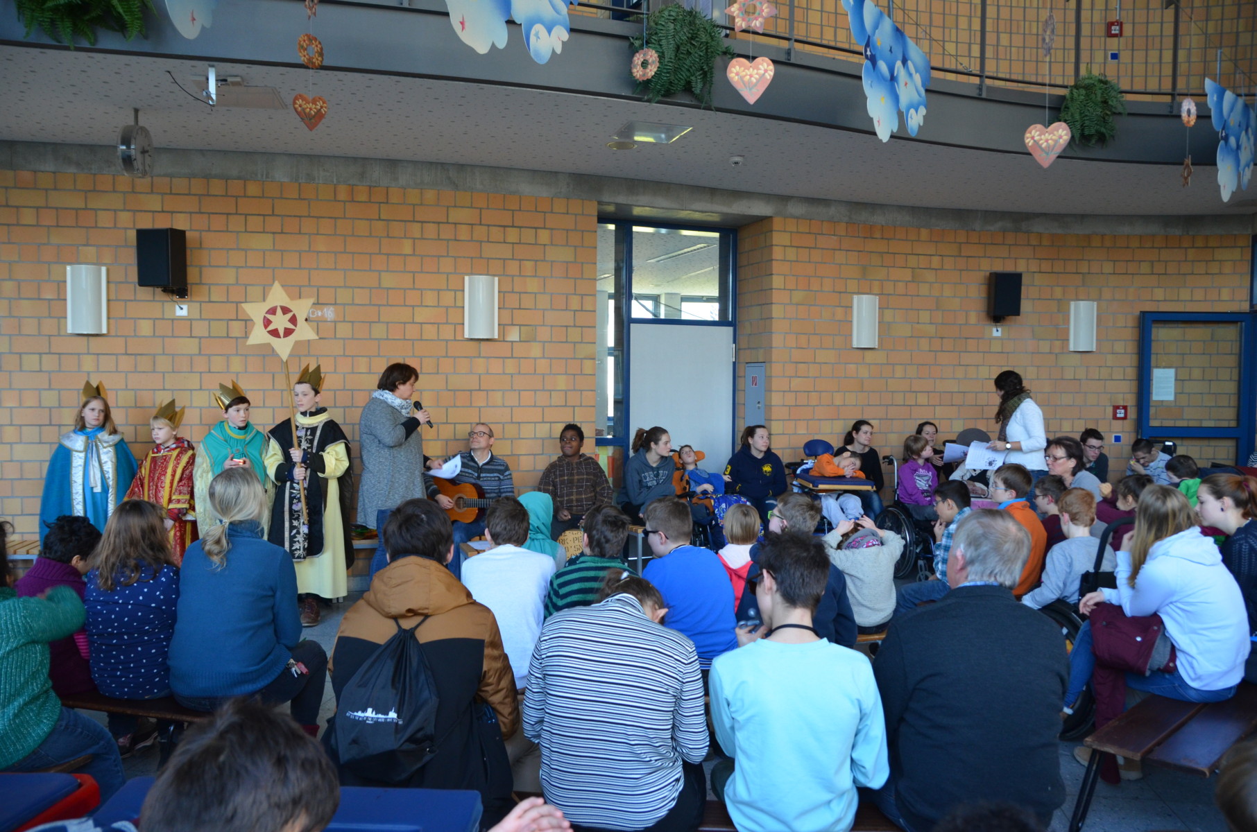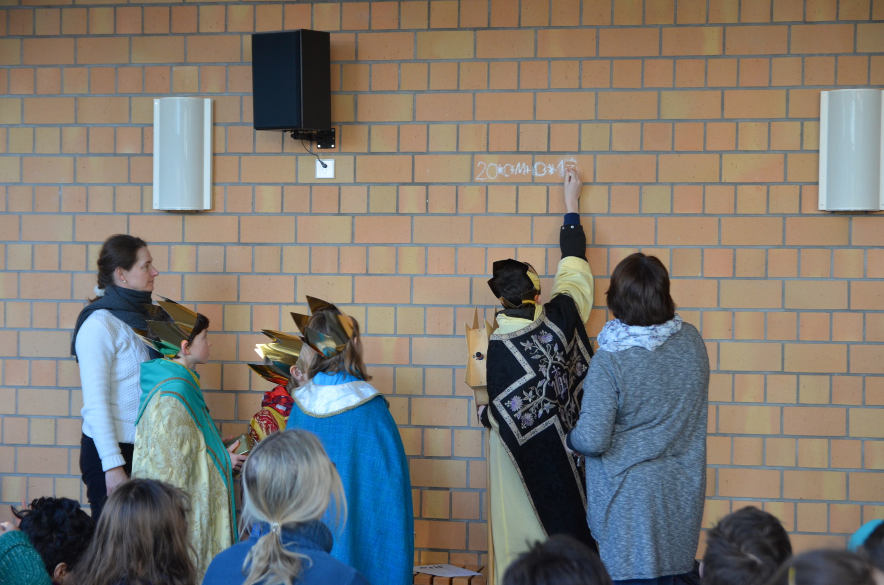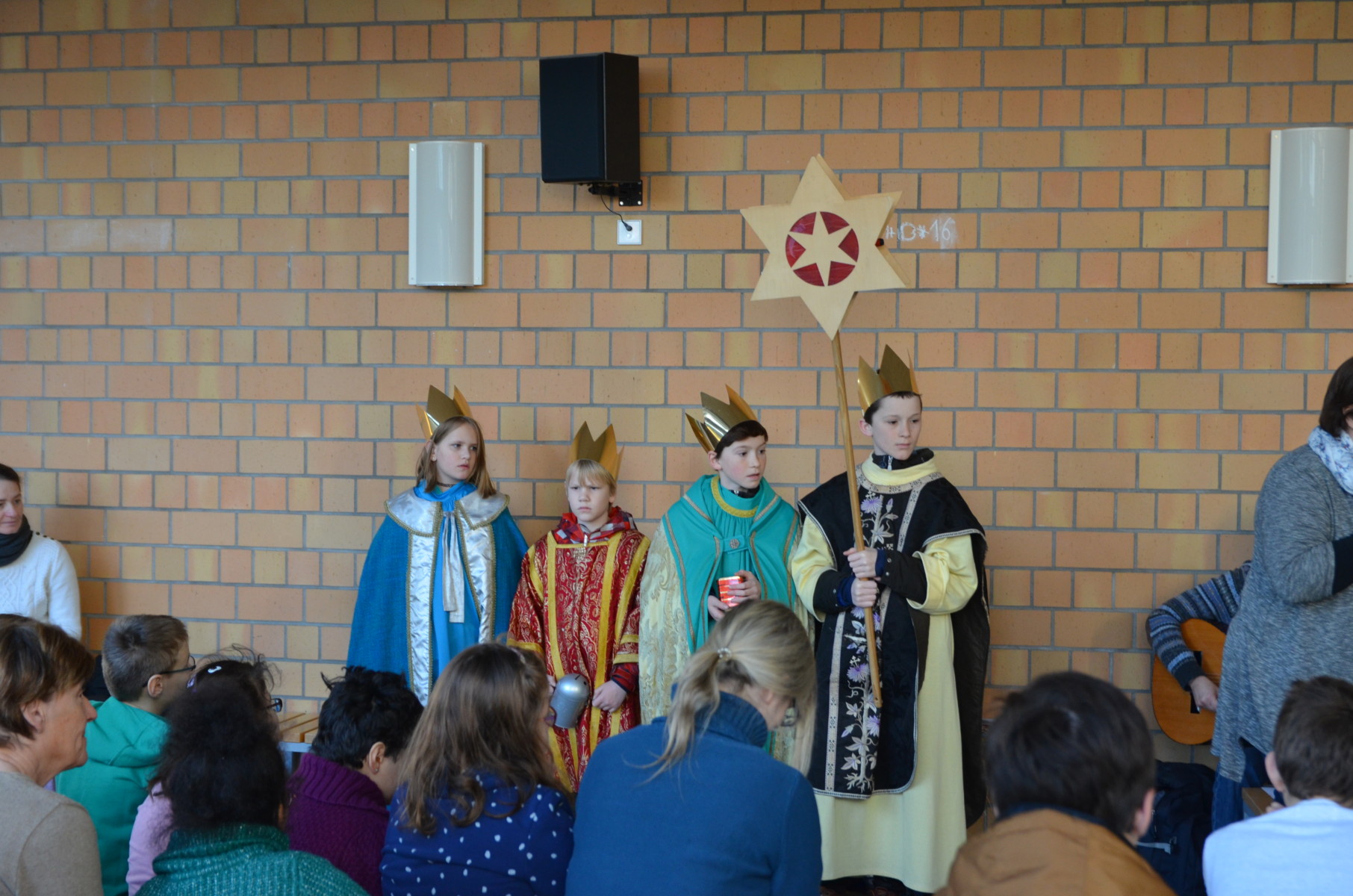 Die Sternsinger in dieser Gruppenzusammensetzung sind bereits seit ca. 5 Jahren vertraut mit unserem Haus und lassen souverän die Schüler z.B. Weihrauch riechen, die prunkvollen Umhänge betasten und leihen auch mal gerne ihre Königskronen kurz aus.
