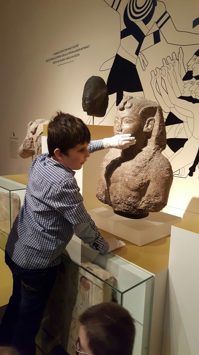 Wir durften während der Führung tatsächlich mehrere originale Statuen von dem ägyptischen Pharao Ramses II. anfassen, aber mit Handschuhen. Die Handschuhe waren sehr dünn und man konnte deshalb trotzdem alles sehr gut fühlen.