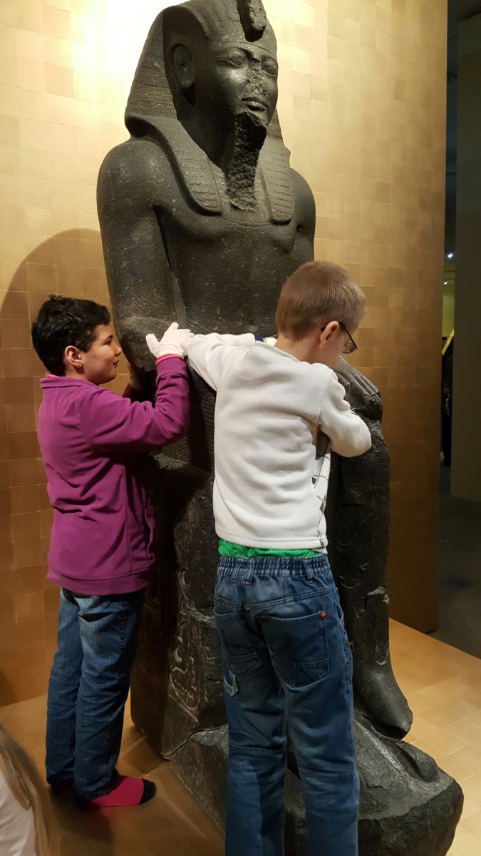 Wir durften während der Führung tatsächlich mehrere originale Statuen von dem ägyptischen Pharao Ramses II. anfassen, aber mit Handschuhen. Die Handschuhe waren sehr dünn und man konnte deshalb trotzdem alles sehr gut fühlen.