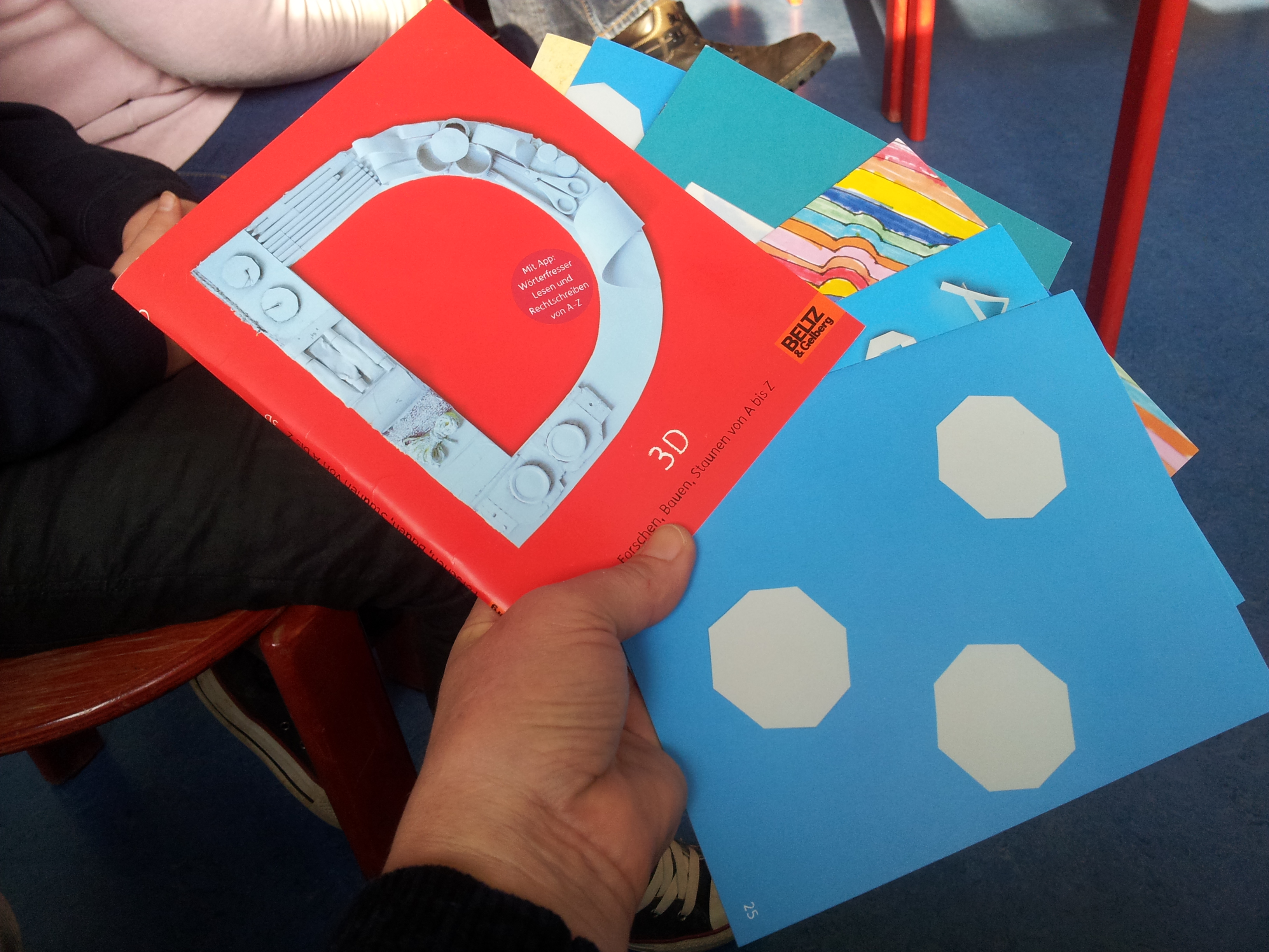 Als Anschauungsmaterial brachten Frau Lösch und Herr Seebohn unterschiedlich gut fühlbare Bucheinbände, noch nicht zusammengesetzte Buchteile und verschiedene Heftungsvarianten mit, die spannend zu ertasten waren.
