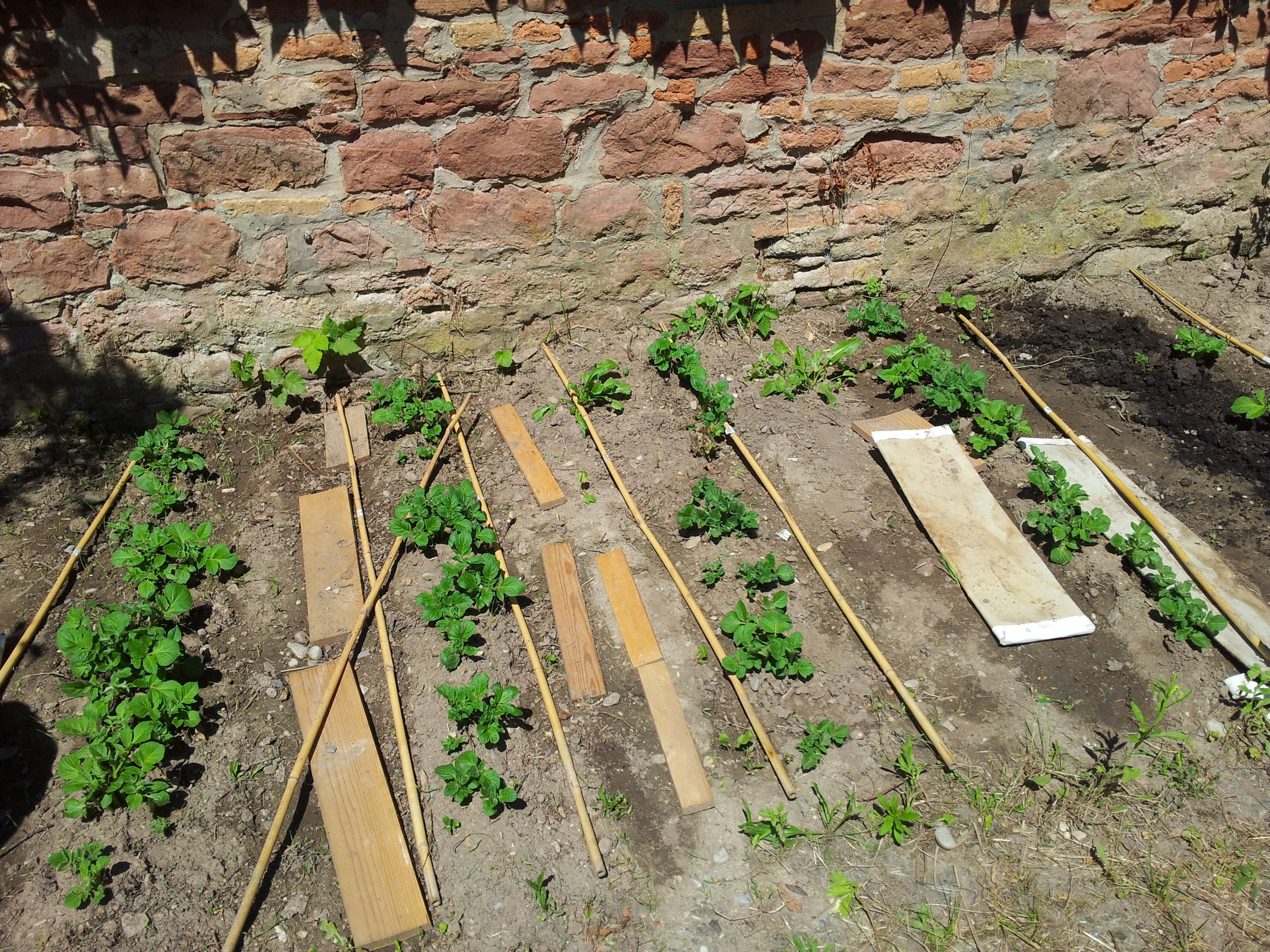 Die Kartoffeln in den Beeten konnten wir Ende Juli dann schon für unser Schullandheim ausbuddeln – einige Zeit länger wäre sicher gut gewesen, aber das Schuljahr ging ja zu Ende und das Landheim, in dem wir uns selbst versorgt haben, brauchte ja das Material!!