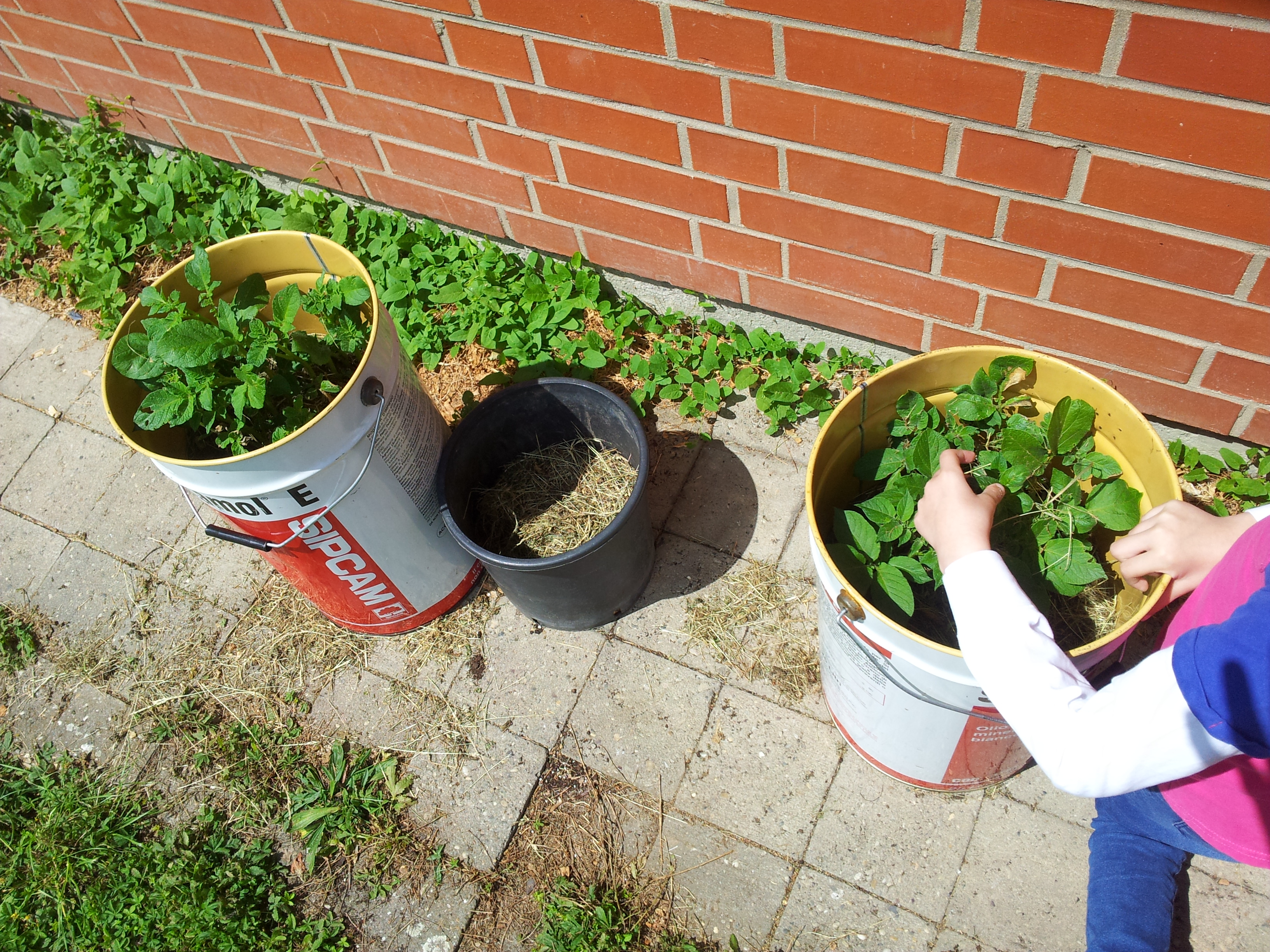 In den Kartoffeltürmen waren bis dahin leider nicht sehr viele Kartoffeln gewachsen. Wir haben die Pflanzen aber wieder einzubuddelt und nach den Sommerferien konnten wir tatsächlich noch ein paar Kartoffeln ernten, die wir dann unserem Hausmeister zum 50. Geburtstag geschenkt haben.