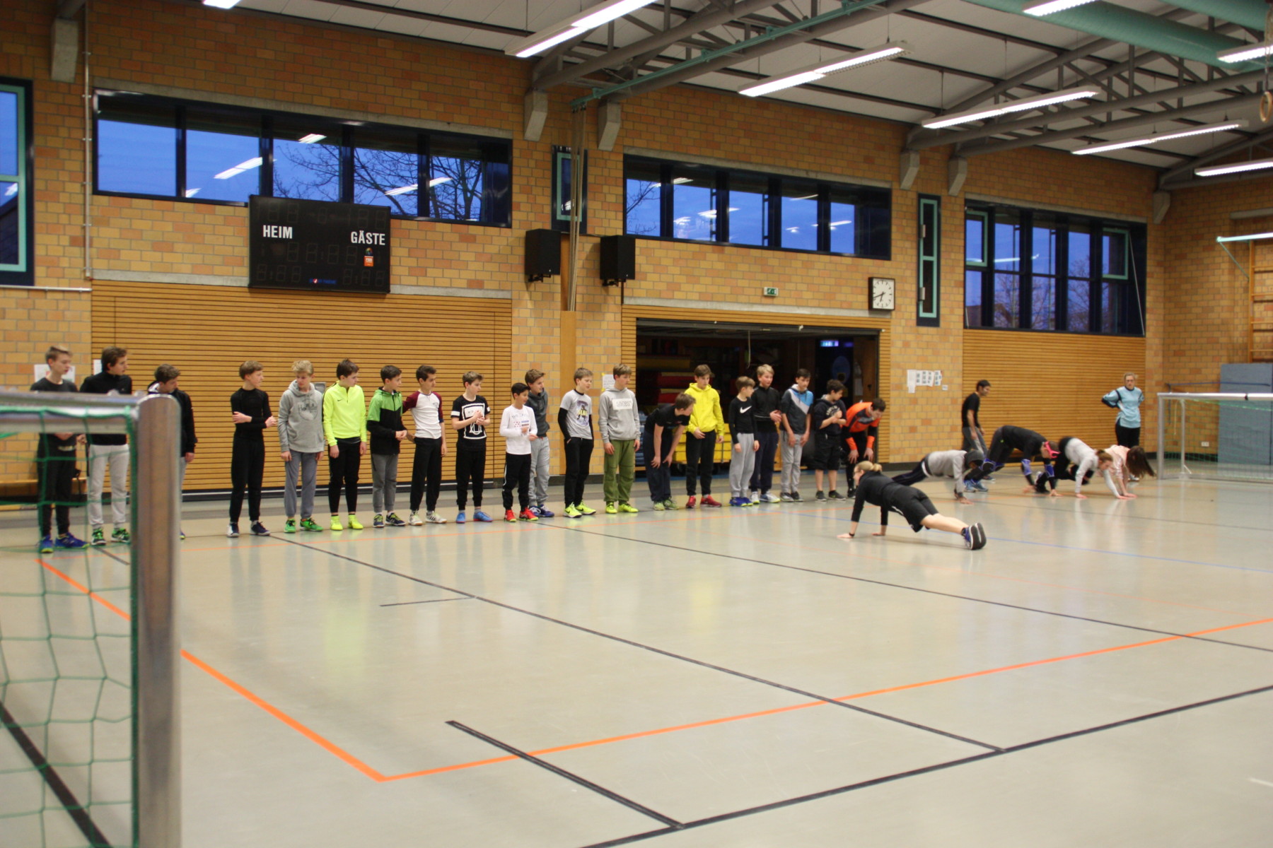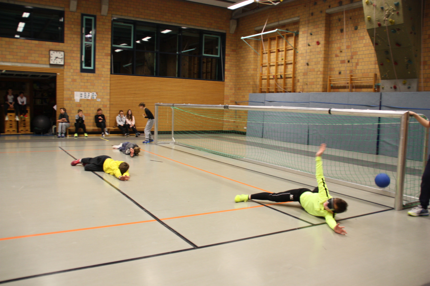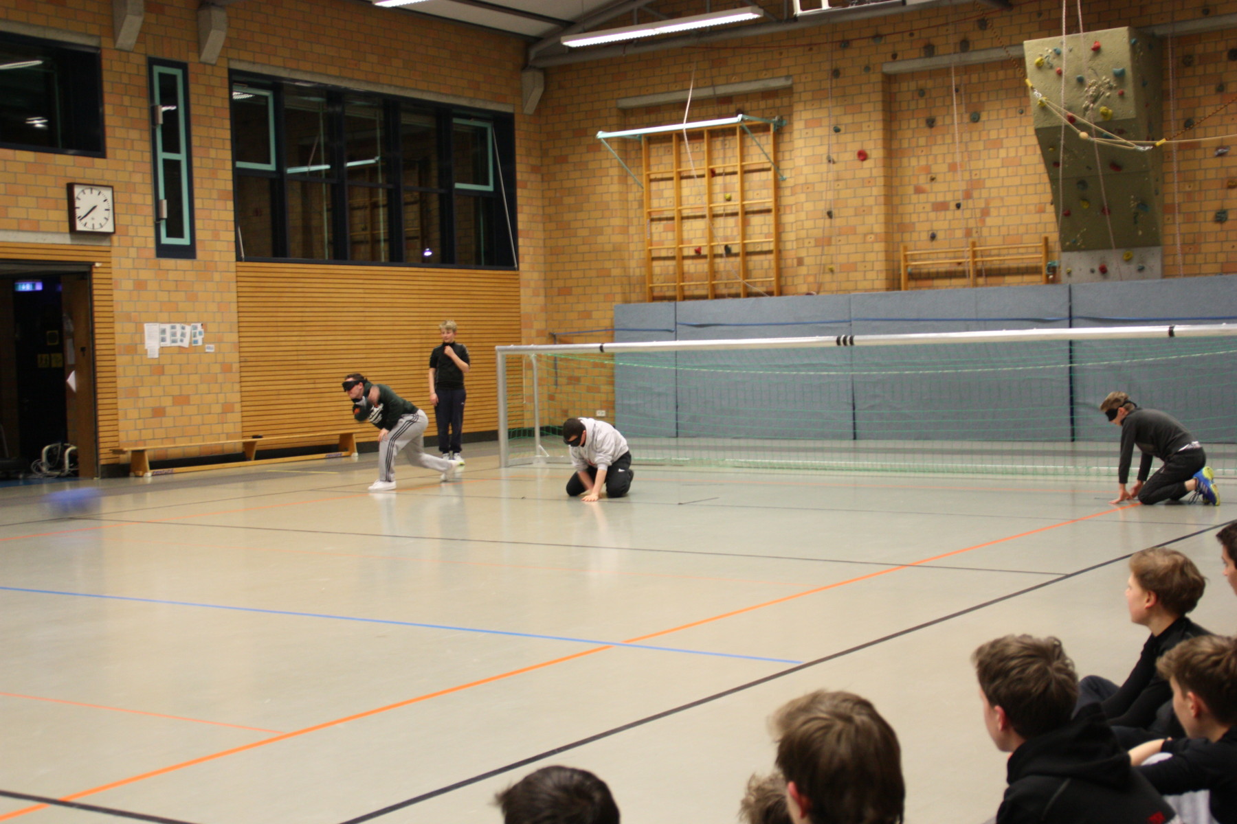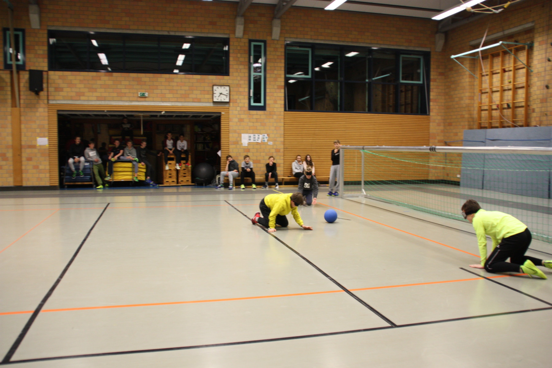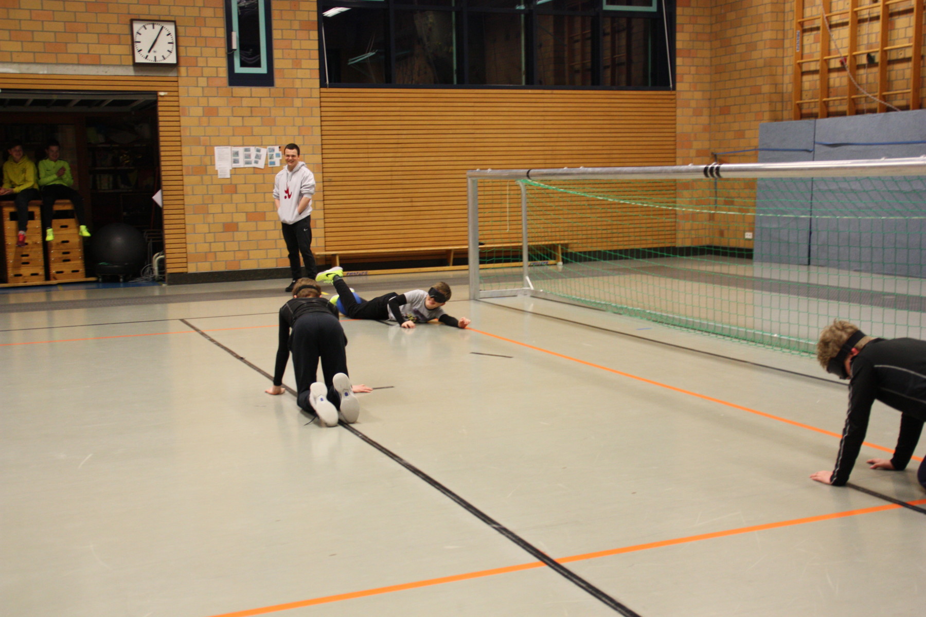 Am Montagabend hatten unsere Goalballer besondere Trainingsteilnehmer zu Besuch: Die Junioren-Hockey-Mannschaft des TSV Mannheims war mit circa 20 Jungs im Alter von 12-14 Jahren mit ihren Trainern und Betreuern da, um Goalball kennen zu lernen und natürlich auch zu spielen.