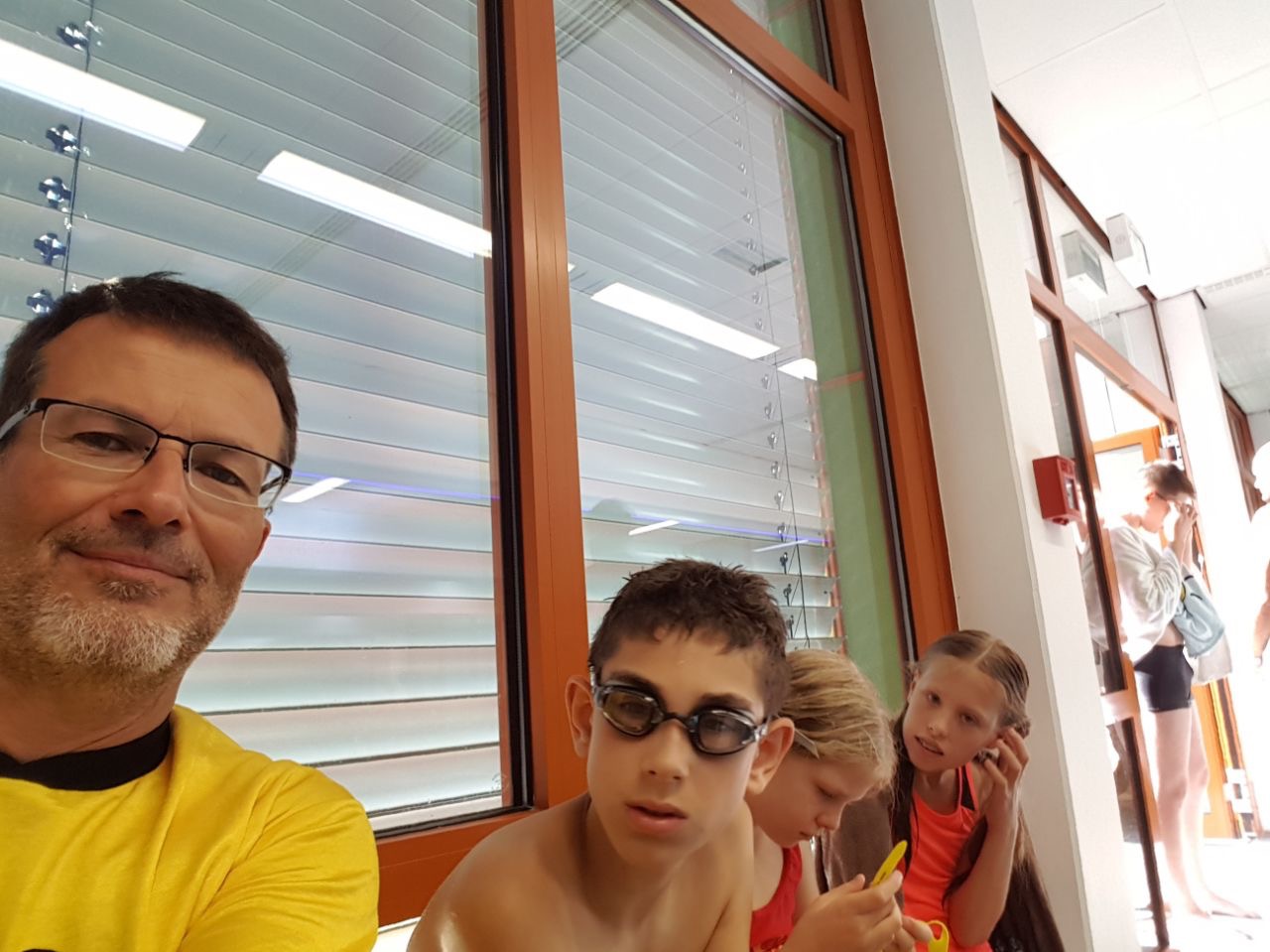 Nach dem etwas feuchten Start in das Landesschulsportfest standen nach der Übernachtung in der Jugendherberge am nächsten Tag die Wettkämpfe im Schwimmen und Goalball an. Leonie, Dana und Jan gingen für die Schloss-Schule im Schwimmbecken an den Start. Dabei schwamm Jan – sowohl im Freistil als auch beim Brustschwimmen – über die 25 Meter aufs Treppchen und holte sich in beiden Fälle die Bronze-Medaille!