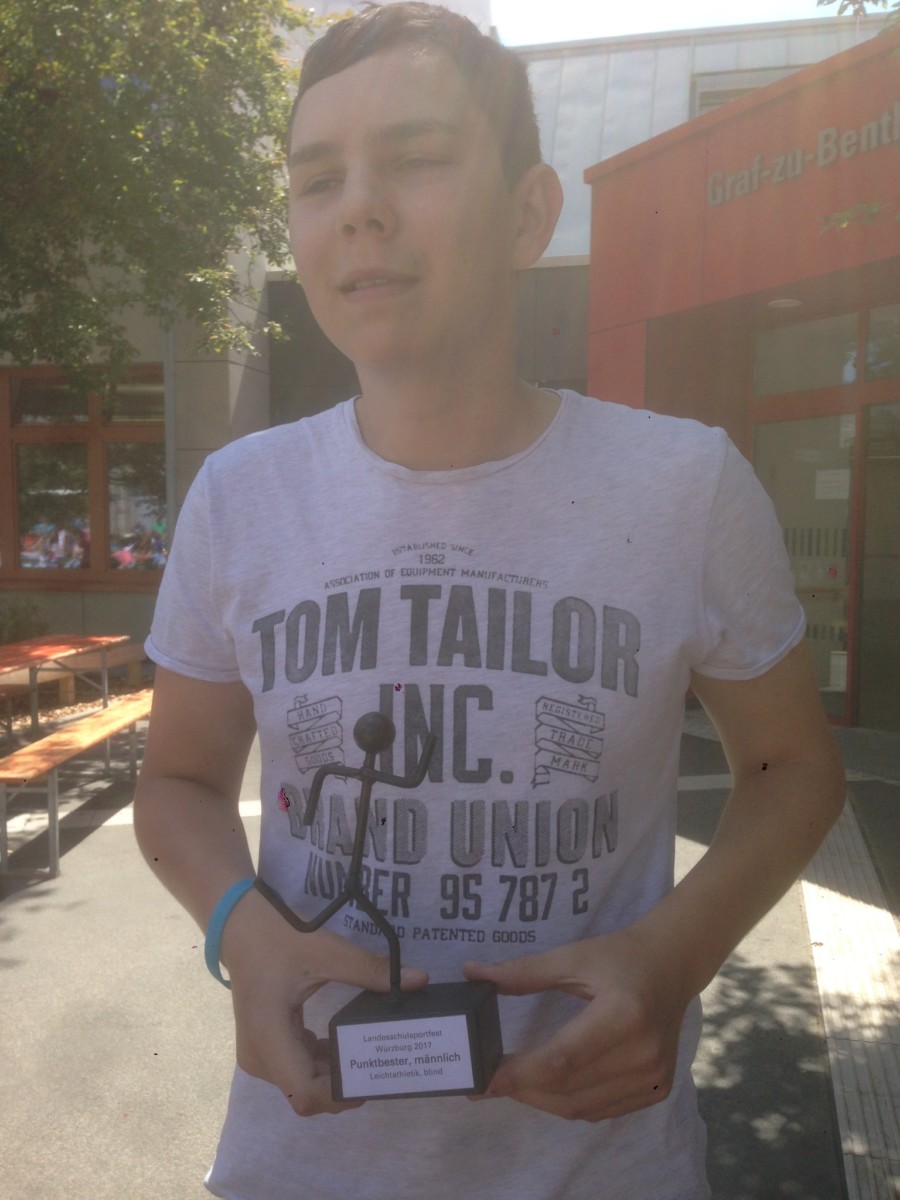 Doch der erste Wettkampftag, für den der Dreikampf der Leichtathletik auf dem Programm stand, fiel sprichwörtlich fast ins Wasser. Starke Regenfälle führten dazu, dass der Weitsprung aus Sicherheitsgründen gestrichen wurde, sodass lediglich ein Zweikampf in den Disziplinen Laufen und Werfen stattfinden konnte. Unsere Sportlerinnen und Sportler ließen sich durch den Regen und die Regeländerung aber nicht beirren. Leonie konnte mit einer starken Leistung über 800m bei ihrer ersten Teilnahme am Landesschulsportfest den dritten Platz in der Leichtathletik in ihrer Altersklasse einfahren. Ebenso Sophie, eine erfahrene Starterin beim Landesschulsportfest, konnte die Bronze-Medaille nach Ilvesheim bringen. Daniel sicherte Ilvesheim bei den Jungen in der ältesten Wettkampfgruppe die Silbermedaille. Marco und Julia konnten ihrer Wettkampfklasse sogar zwei Goldmedaillen nach Ilvesheim bringen. Darüber hinaus wurde Marco als punktbester blinder Leichtathlet geehrt!