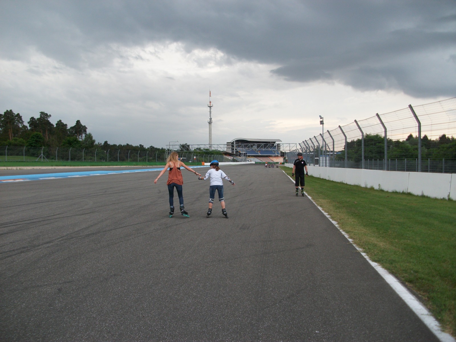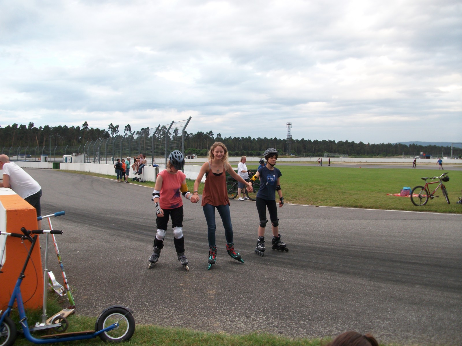 Am Dienstagabend hatten wir, die Gruppe 3, die Gelegenheit auf dem Hockenheimring Inliner und Roller zu fahren. Mit Picknickdecke und Verpflegung ausgestattet giong es um halb sechs mit Schulbus los Richtung Fahrerlager. Nach dem wir unsere Picknickdecke ausgebreitet und unsere Inliner angezogen hatten, konnten wir starten. Nach drei Stunden Spass, Lachen und Auspowern ( Kleine Runde: ca. 3 km, Große Runde: ca. 5 km ) wurden wir zurück in die Schule gefahren.
