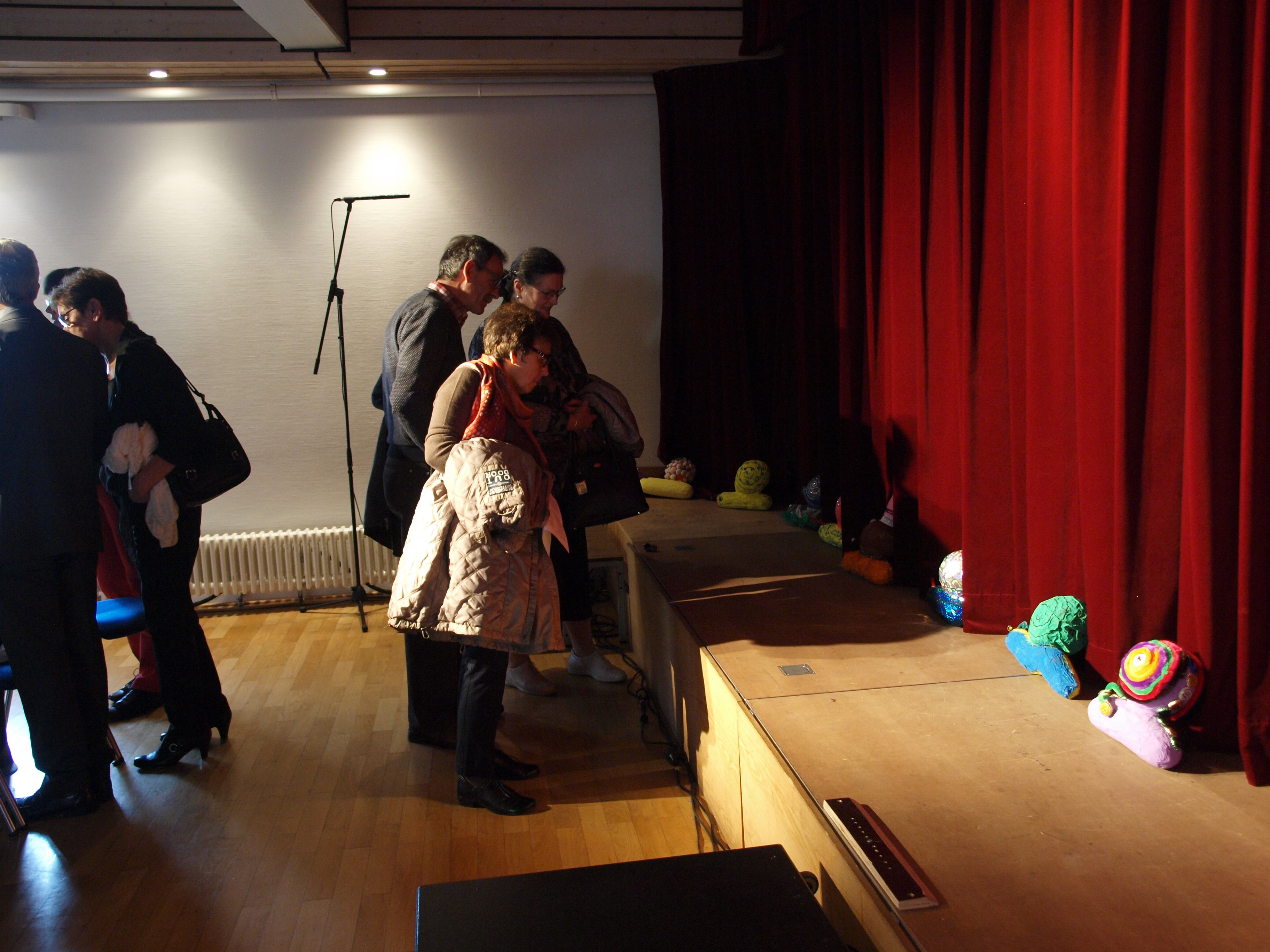 Bewusst wurde wenig über das Alter oder gar die Sehbehinderung oder den Bildungsgang des Schülers gesagt und so stand das Werk mit seiner Wirkung, seiner Botschaft und seiner Fantasie im Vordergrund. Die Werke sind noch bis Ende November zu sehen. Interessenten wenden sich bitte an die Pforte, um Zugang zu erhalten.