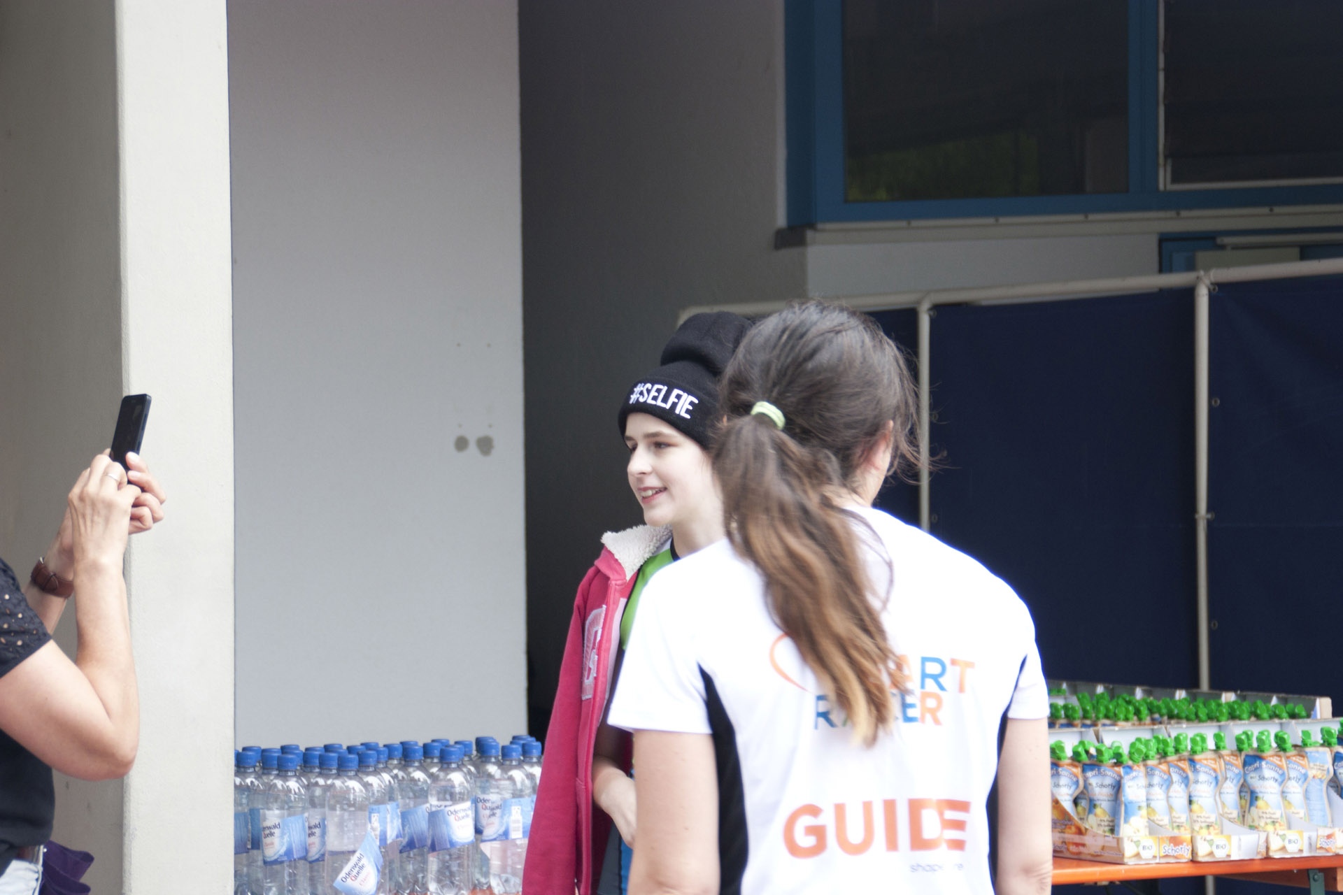 13.30 Uhr: Alles ist eingerichtet, Sophie und Kerstin gehen mit ihren Guides zur Abschlussbesprechung. Die beiden starten in der Startklasse Schüler A, zusammen mit 45 weiteren Teilnehmern. Hier werden nochmal alle Regeln erklärt, wie zum Beispiel, das man erst bei der Linie auf dem Boden aufs Rad steigen darf und dort auch wieder absteigen muss. Danach gingen die Jungs an den Start, zehn Minuten später waren die Mädels dran. Sophie und Kerstin hatten also noch Zeit, sich mit ihren Guides aufzuwärmen. Die Guides sind Erwachsene, die gerne Sport machen und ehrenamtlich die blinden und sehbehinderten Kinder und Jugendliche auf ihren Wettkämpfen und im Training begleiten. Um 14.00 Uhr ertönte dann das Startsignal für die Mädels und die Teilnehmerinnen, die auf acht verschiedenen Bahnen unterwegs waren, gaben ordentlich Gas. 100 Meter standen ihnen nun im Wasser bevor. Es war zwar ziemlich kalt, aber der Triathlonanzug ist gleichzeitig ein Kälteschutz und so merkte man fast gar nichts von der Temperatur, nur wenn man den Kopf ins Wasser legte, konnte man sie im Gesicht spüren. Die Guides liefen am Beckenrand entlang und gaben Anweisungen wie „weiter nach rechts“, „weiter nach links“, „Achtung, Gegenverkehr“, „weiter geradeaus“. Jedes Kind hat einen eigenen Guide, so muss man auch nicht immer nachfragen, wer gemeint ist, sondern muss sich lediglich die Stimme einprägen. Nach zweimal 50 Meter sprang man dann aus dem Wasser und rannte, entweder mit oder ohne Begleitung, in die Wechselzone. Dort musste man sich Schuhe (und evtl. Strümpfe) anziehen, den Helm aufsetzen, die Startnummer umhängen, sich am Rad festhalten und mit dem Rad bis zur Aufsteig- bzw. Absteiglinie rennen. Da war es natürlich gerade bei den Blinden wichtig, dass alles seine Ordnung hatte, damit man die Utensilien schnell fand und nicht erst minutenlang danach suchen musste. Auf Rädern bewegte man sich dann über eine Distanz von sechs Kilometern fort, die Schloss-Schüler saßen dabei mit je einem Guide, der ihnen dann die Augen lieh, zusammen auf einem Tandem. Da es sehr matschig war, spritzte es teilweise ziemlich heftig und man war am Ende total verdreckt. Nach dem Absteigen an der Linie, dem Abstellen des Rades und dem Abziehen des Helms ging es weiter auf die 1,4 Kilometer lange Laufstrecke. Dabei nahmen die Seheingeschränkten ein Laufband zur Hilfe, wo am einen Ende der Schüler und am anderen Ende der Guide anfasste. So konnte der Guide den Schüler besser lenken und sich trotzdem gut dem Tempo anpassen. Nach 28 Minuten hatte Sophie es dann geschafft, Kerstin brauchte rund 34,5 Minuten, um das Ziel zu erreichen – freudig rissen sie die Arme hoch und nahmen ihr Finisher-Shirt entgegen, das jeder Teilnehmer, der ins Ziel kommt, erhält. Für Kerstin war dies etwas sehr Besonderes, sie hatte das erste Mal einen ganzen Triathlon absolviert, davor hatte sie nur in einer Staffel teilgenommen. Aber auch alle anderen, die schon öfter dabei waren, war es, wie bei jedem Wettkampf, etwas ganz Besonderes. Hoffentlich können wir nächstes Jahr wieder mitmachen – aber bitte ohne 40°C Außentemperatur …