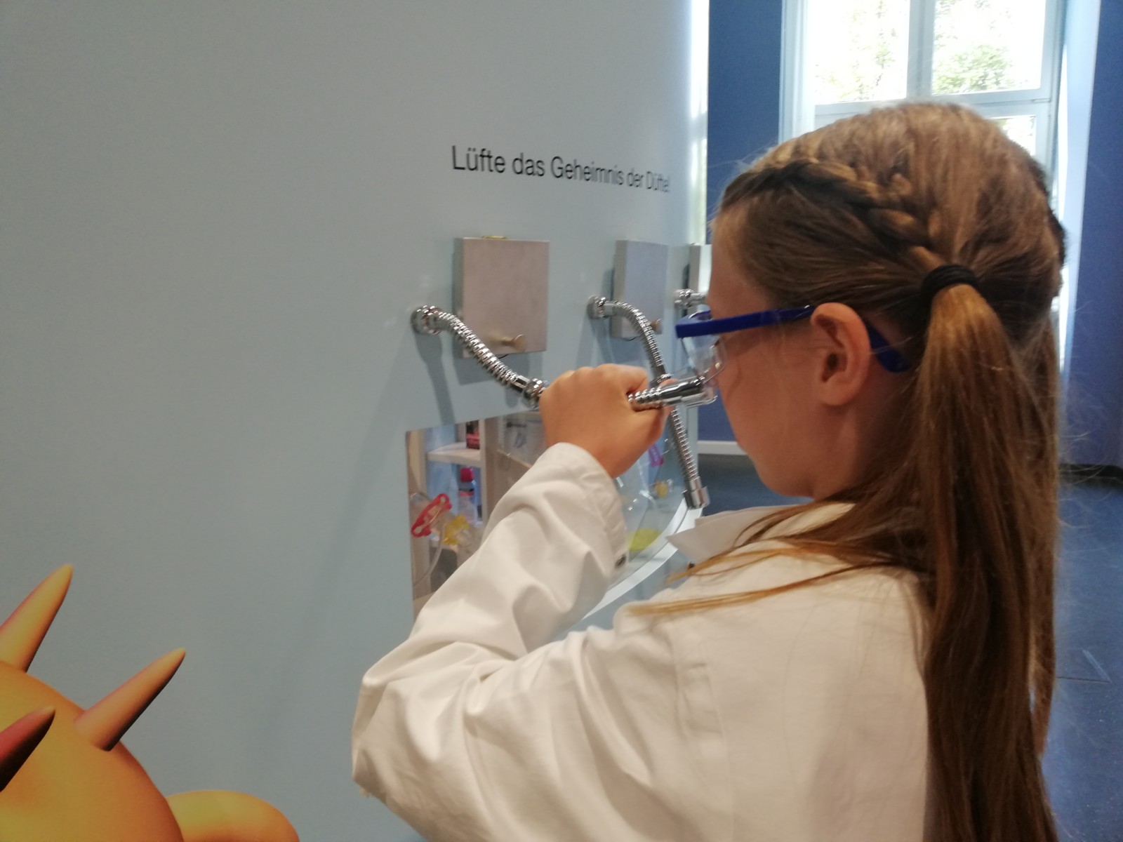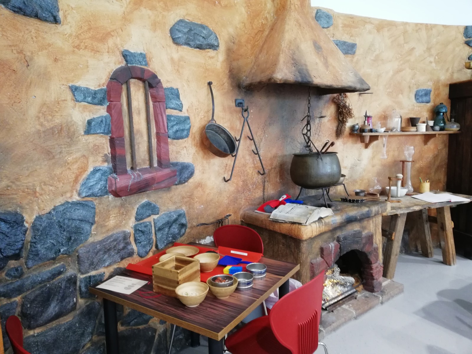 Es gab den Bereich der Alchemisten. Dort waren viele Gegenstände aus früheren Zeiten ausgestellt, sodass man wirklich das Gefühl hatte, in einer vergangenen Zeit angekommen zu sein. Gerade für die Schüler mit einer Sehschädigung warteten hier interessante Versuche, die ausprobiert werden konnten und alles durfte angefasst werden. Eine alte Waage mit Gewichten, verschiedene Siebe zum Sortieren von Materialien, unterschiedliche Gefäße für Flüssigkeiten und Mörser zum Zerreiben von Gewürzen und Blättern, verschiedene Stationen zum Pippetieren und Trennen von Flüssigkeiten.