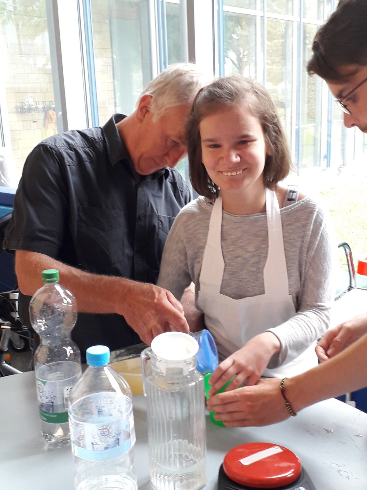 Gerne besucht wurde auch die „Catering-Station“ der Berufschulstufe, für die wir herzlich danken möchten. Hier schenkten Leni und Emma Getränke aus und Knabbergebäck stand ebenfalls bereit.
