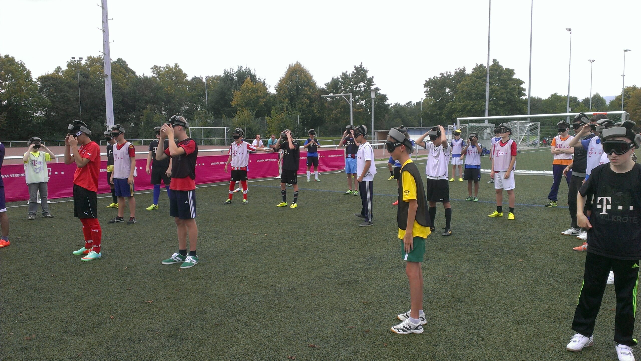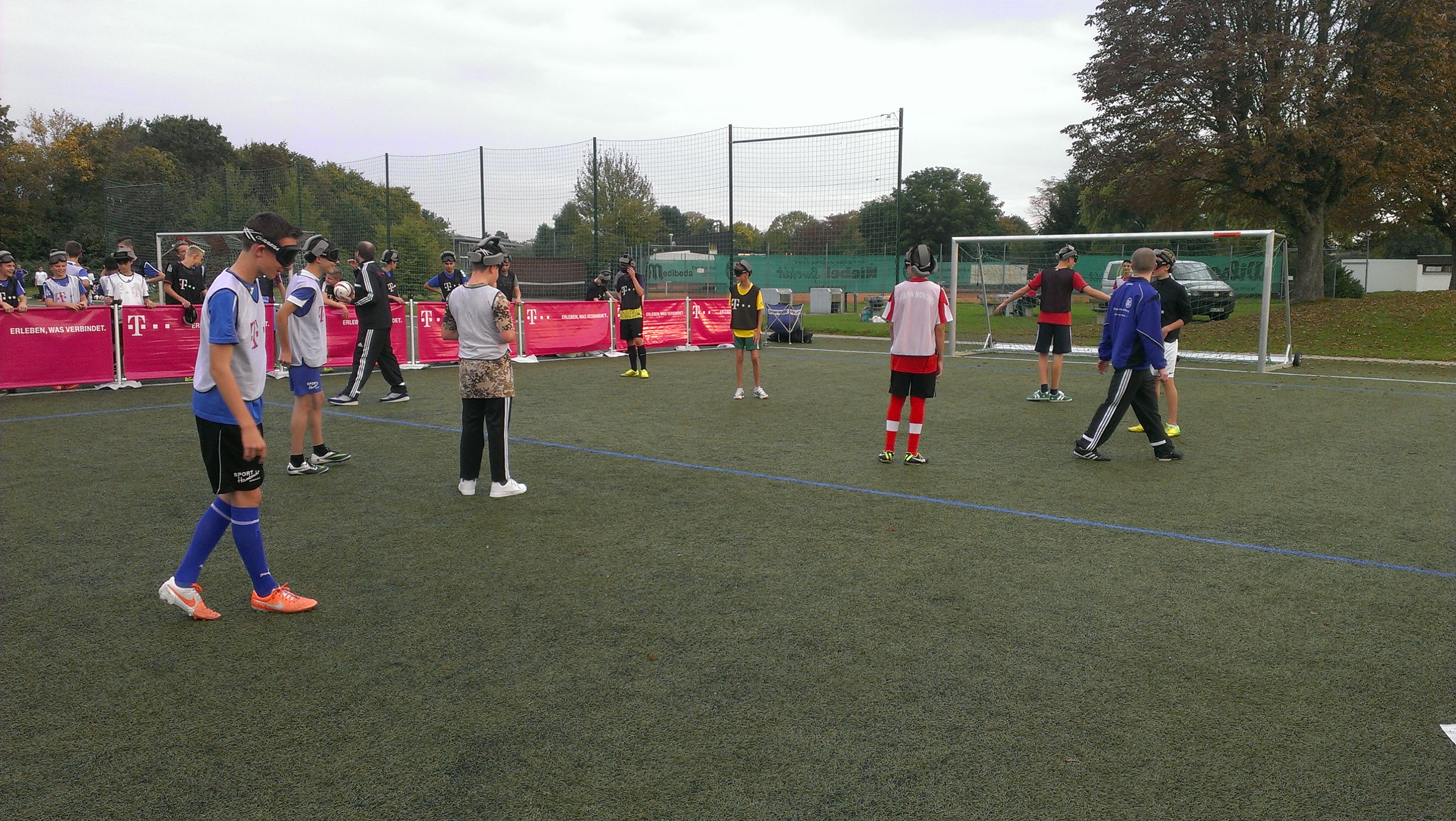 Info: Das Projekt „neue Sporterfahrung Blindenfussball“ wurde 2009 von der Deutschen Telekom in Kooperation mit dem DFB und dem Deutschen Behindertensportverband ins Leben gerufen. Hierbei sollen nicht-behinderte Kinder und Jugendliche die Möglichkeit erhalten, eine Behindertensportart auszuprobieren. Dadurch sollen die Sportler ohne Handicap für die Leistungen von Menschen mit Handicap sensibilisiert werden und der gegenseitige Respekt und die Toleranz füreinander gefördert werden.