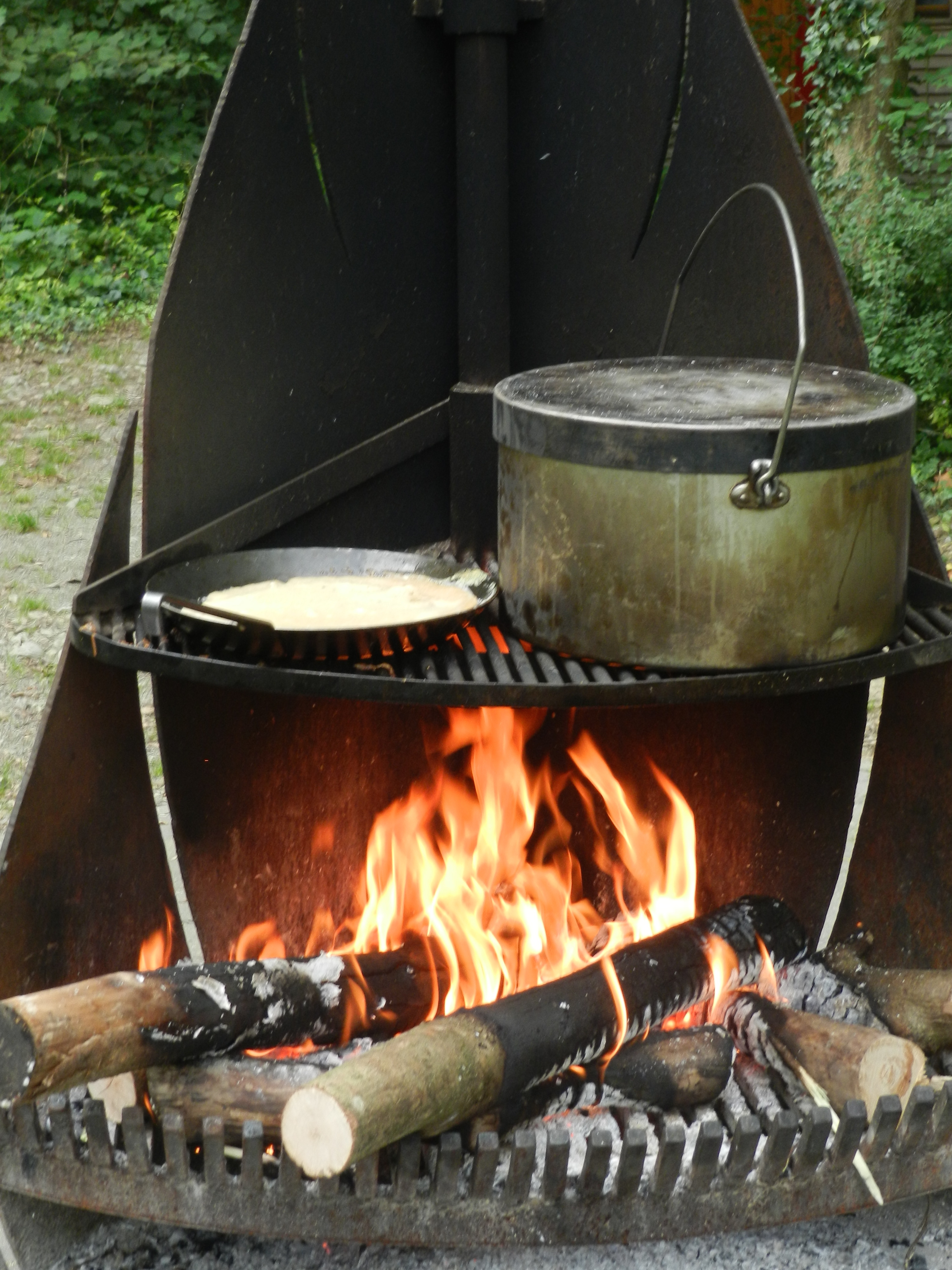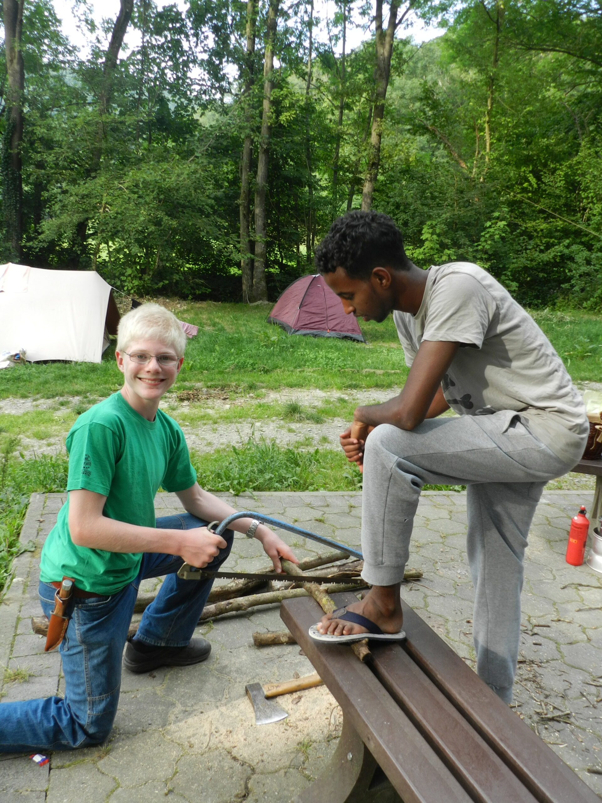 Vom 18. bis 20. Juli waren sechs Schülerinnen und Schüler der 7. bis 9. Haupt- und Realschulklassen im Rahmen der Natur-AG auf dem Jugendzeltplatz bei Langenburg an der Jagst. Das Lagerleben nahm einen großen zeitlichen Rahmen ein: Zelte aufbauen und einräumen, eine Lagerküche einrichten, Feuerholz bereiten, Lagerfeuer machen, Essen vorbereiten und auf dem Feuer kochen. Und so gab es neben den Klassikern wie Stockbrot, Grillwürstchen und Nudeln mit Tomatensoße, auch selbstgebackene Brötchen und Waffeln vom Lagerfeuer. Am Samstag fand tagsüber eine „Landschaftsreise“ statt. Auf einem Wanderweg durch Wald und Wiesen gab es immer wieder Stationen, die zum Naturerkunden mit allen Sinnen einluden: z.B. gefällte Bäume als Baumtelefon entdecken, einen bemoosten Baum näher untersuchen und die Himmelsrichtungen zu bestimmen, Tonerde zwischen den Wurzeln eines umgefallenen Baumes zu entdecken und „abzubauen“. In dem Dorf Unterregenbach konnte die Gruppe sich an einem Brunnen erfrischen und die Trinkwasserflaschen auffüllen. Es folgte eine längere Rast im Schatten einer ehemaligen Tanzlinde, die von einigen Schülern kletternd erobert wurde. Zum Abschluss der längeren Pause stand noch ein Besuch in einer alten und bei dem heißen Wetter sehr angenehm kühlen Krypta statt. Es war ein besonderes Klangraumerlebnis und es konnten dank der niedrigen Raumhöhe sowohl die Rund- wie Quadratsäulen mit unterschiedlichen Kapitellen ertastet und bestaunt werden. Entlang der Jagst ging es zurück zum Lagerplatz. Doch endete die Wanderung genau auf der anderen Seite der Jagst. So blieb den Schülerinnen und Schülern und den Betreuern nur übrig sich die Badesachen anzuziehen, die Kleidung in mitgenommenen Plastiktüten zu verstauen und den Fluss schwimmend zu durchqueren. Nachdem am Sonntag alle Zelte wieder abgebaut waren, ging die Gruppe noch mal zu einer Aktion in den Wald. Die Schülerinnen und Schüler formten zum Abschied des Wochenendes aus dem vom Vortag mitgenommenen Ton Figuren, die sie an einem selbst gewählten Platz in der Natur zurückließen. Nach einem sehr schönen, heißen und sonnigen Wochenende kamen wir bei Regen etwa um 16 Uhr wieder in Ilvesheim an.
