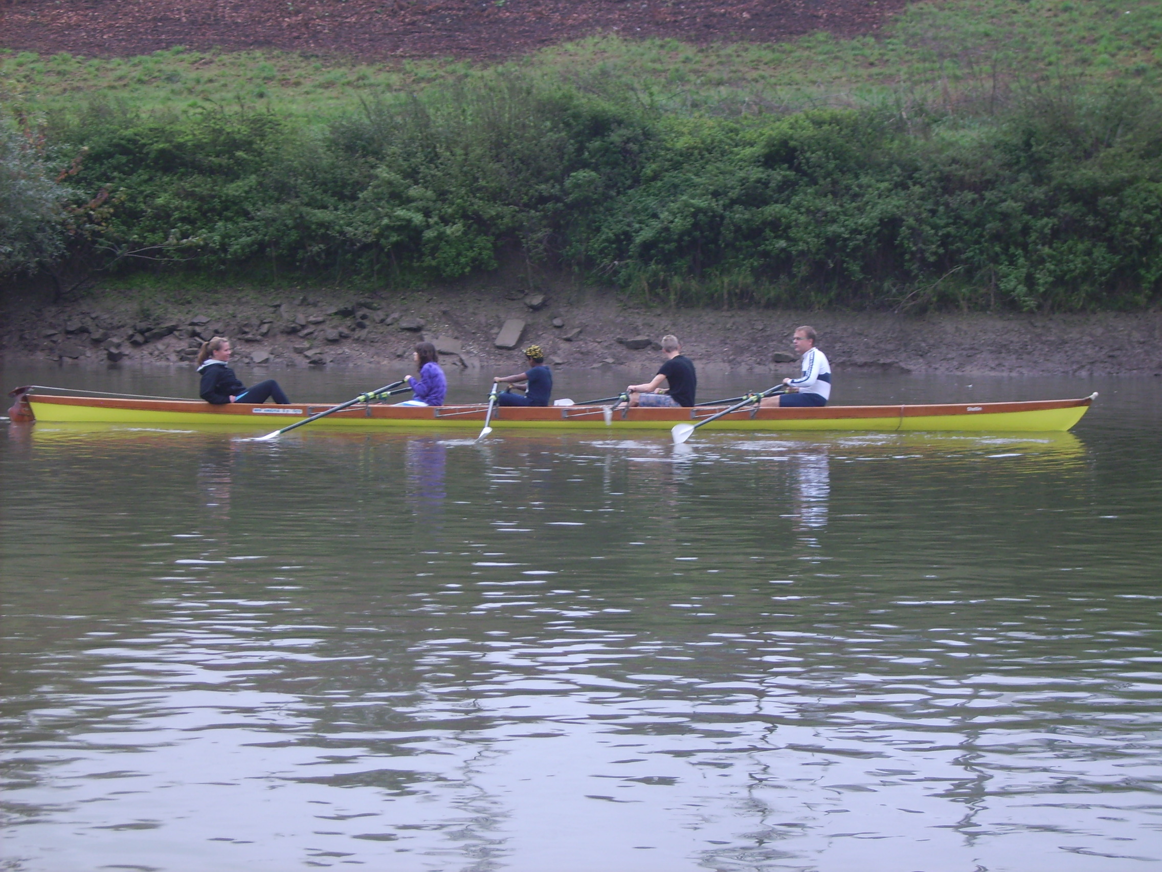 Am Samstag standen wir früh auf, schließlich mussten wir schon um 09.30 Uhr am Ruderverein sein. Wir zogen uns also an, zogen die Betten ab und frühstückten. Am Ruderverein warteten schon einige Eltern, die teilweise weite Strecken auf sich genommen haben. Sie schauten uns beim Abschlusstraining zu und mein Bruder Christian durfte auch mitmachen. Diesmal holten wir zwei Vierer-Gigs und übten das gleichmäßige Rudern. Dabei war das Hauptproblem erstmal die Strömung und wir mussten dauernd wenden, da die strömungsfreie Bucht so klein ist. Wir übten also erstmal zu zweit, im Gleichschlag zu rudern und einen für uns passenden Rhythmus zu finden, während die Anderen das Boot stabilisierten, und mussten dann nach drei bis vier Schlägen wieder wenden. Dieser Prozess war zunächst ziemlich anstrengend, da es sich beim Rudern um eine klassische Team-Sportart handelt, bei der genauestens auf die Bewegungen der übrigen Bootsbesatzung geachtet werden muss. Dennoch war Jens von der Motivation und Geduld beeindruckt und fand lobende Worte: „Einige der Kinder haben sich als wahre Naturtalente entpuppt“.