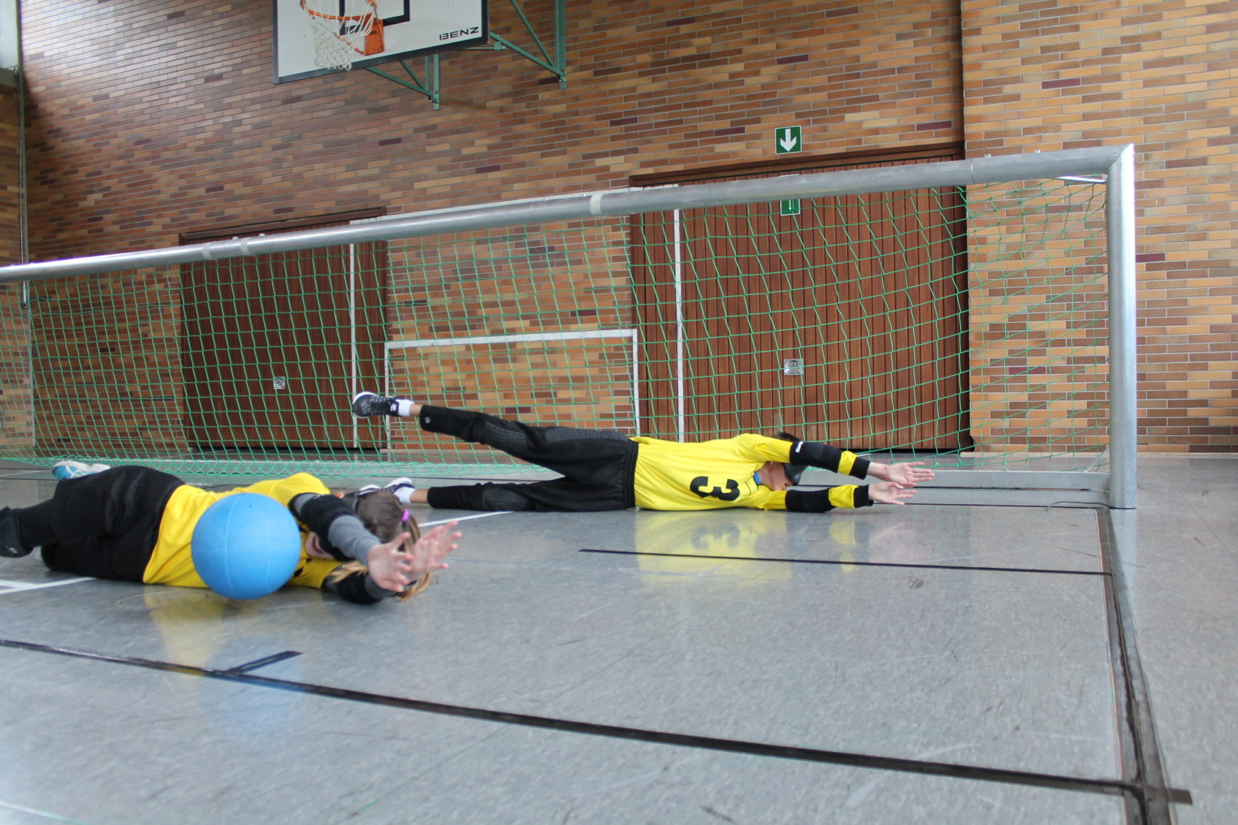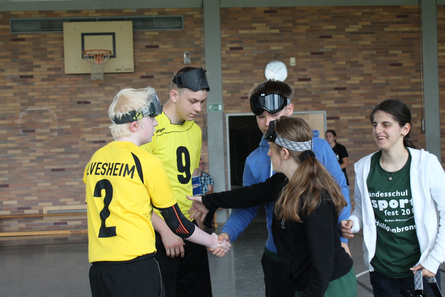 Die restlichen Ilvesheimer traten beim Goalball an. Aus einem Jungen- und einem Mädchenteam wurden kurzerhand zwei Mix-Teams und gemeinsam mit der Albrecht-Dürer-Schule und der Nikolauspflege wurde ein Goalballturnier ausgetragen. Die beiden Teams aus Ilvesheim zeigten ihren Trainingsvorsprung und gewannen die Duelle gegen die anderen Schulen souverän und sicher mit Spielabbrüchen. Im spannenden Finale Ilvesheim 1 gegen Ilvesheim 2 setzte sich dann die wurfstärkere Mannschaft um Daniel durch und konnte sich mit 5 Toren Abstand den ersten Platz sichern. Sophie, Julia und Lasse mussten sich mit dem zweiten Platz zufrieden geben, die ihre tolle Leistung aber kein bisschen schmälerte.