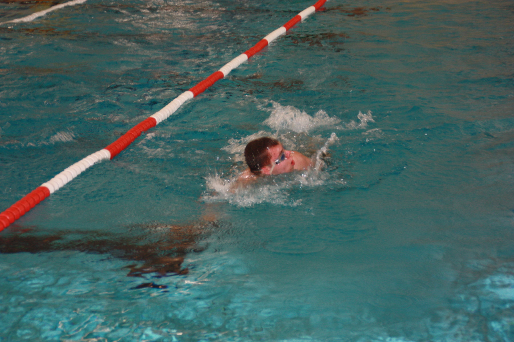 Aufgeteilt in zwei Wettkampfklassen wurden die Lagen Freistil, Brust und Rücken geschwommen. Sophie – unsere erste Starterin – konnte auch gleich zeigen, dass die Schloss-Schule nicht untergehen wird und schwamm beim Freistil Mädchen 50m die beste Zeit. Tom unterstrich die gute Leistung und schwamm für die Jungs die beste Zeit auf 50m. In der jüngeren Startklasse, die lediglich eine Distanz von 25m absolvieren musste, konnte Jan zeigen, wie ein Triathlet krault und schwamm die drittbeste Zeit. Beim Brustschwimmen konnten Celina und Cedric punkten und auch Jan zeigte sehr gute Leistungen. Ebenso konnten Louisa und Sayon auf die 25 Meter gute Zeiten herausholen. Bei der letzten Disziplin – dem Rückenschwimmen – lief es dann nicht mehr so gut für die Schloss-Schüler. Alle taten sich mit dieser Lage schwer, vor allem die für die Schloss-Schüler ungewohnten Beckenmaße irritierten, sodass viele schon viel zu früh mit Schwimmen aufhörten.