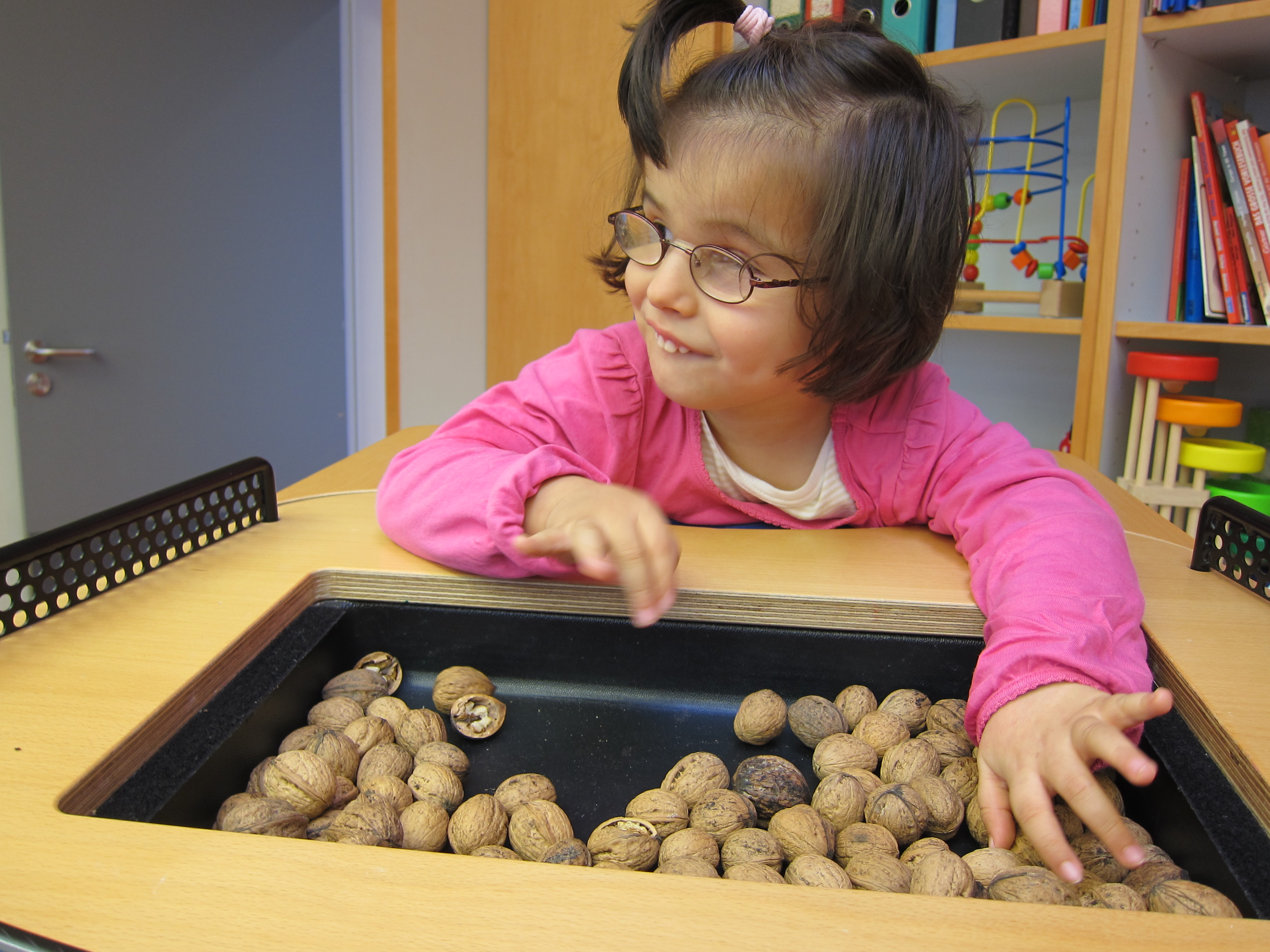 - Förderung der Wahrnehmung mit dem Schwerpunkt der Förderung des verbliebenen Sehvermögens und des Tastsinnes