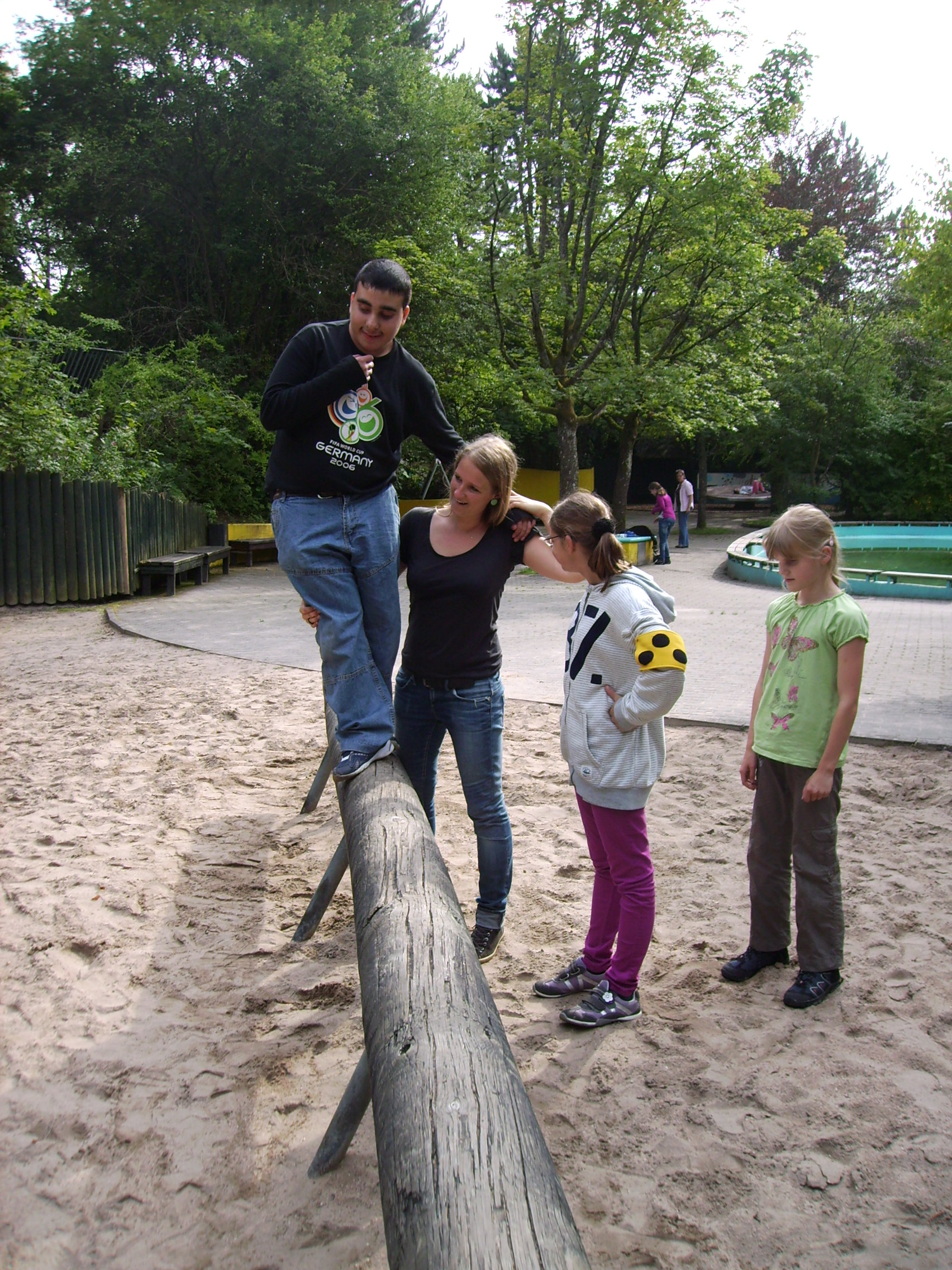 Es gab auch ein Trampolin und 3 Wasserpumpen und es gab sogar einen Parcour zum Balancieren, Klettern und Hangeln. Ein Seilkarussell war auch dabei so wie 2 Balancierbalken.