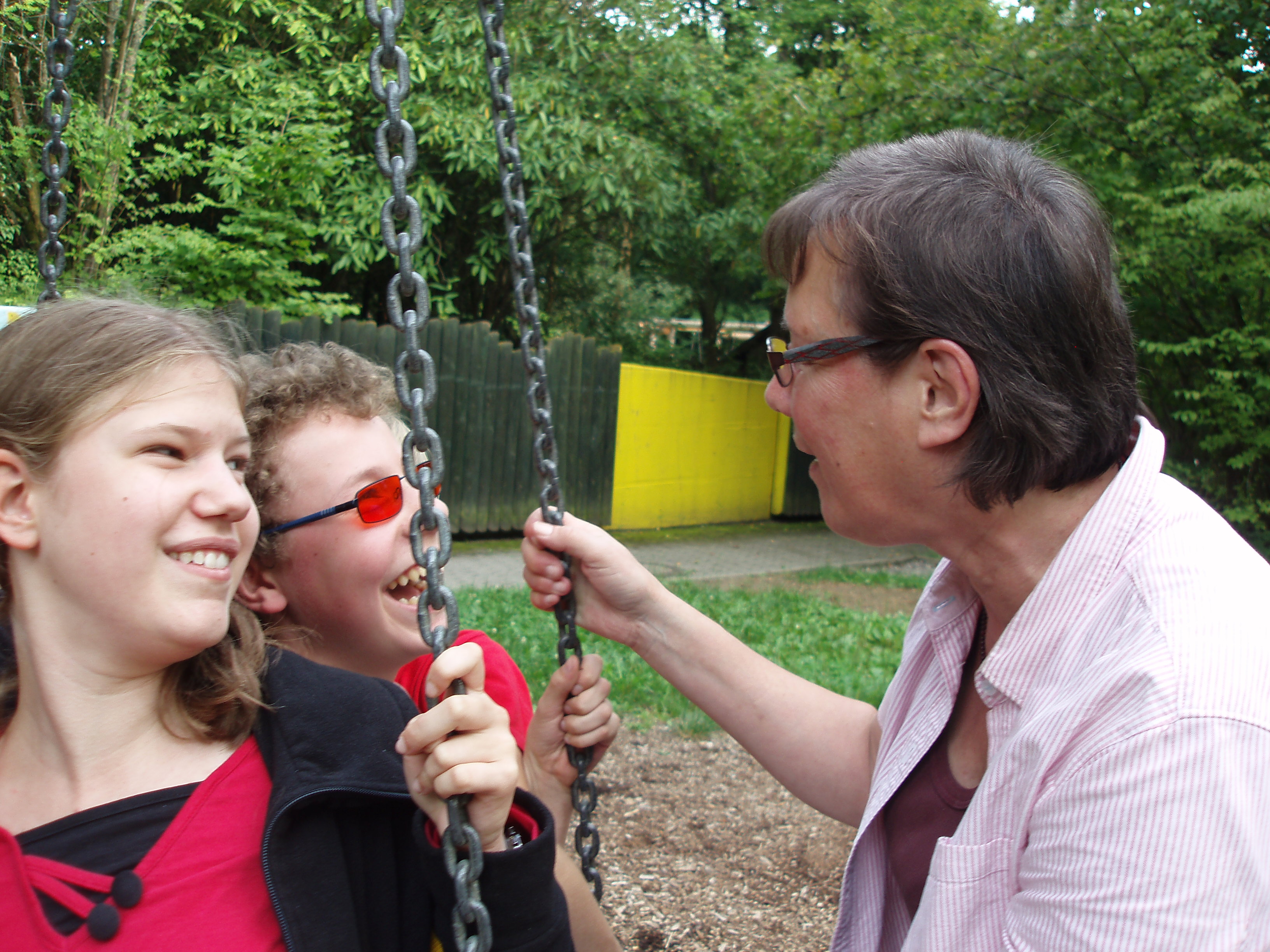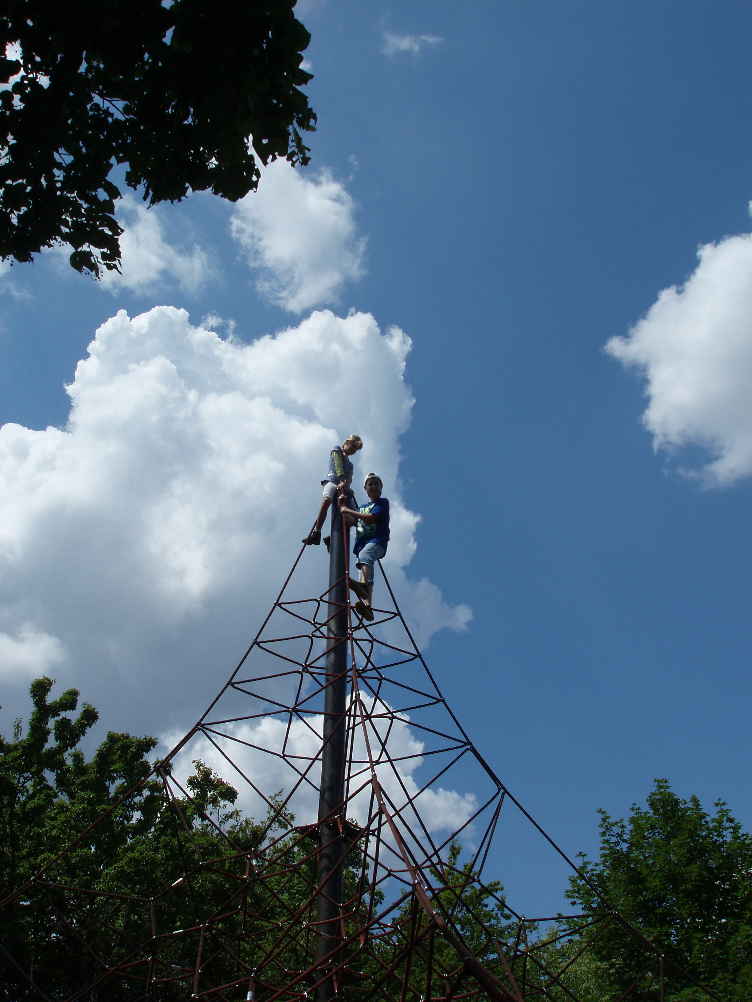 Wir waren sehr, sehr oft auf einem supertollen coolen Spielplatz, der tolle Spielgeräte hatte und riesig war. Es gab ein riesengroßes Spinnennetzklettergerüst, ein Klettergerüst mit 2 Rutschen, einen Drehteller, eine Seilbahn, und es gab viele verschiedene Arten von Schaukeln.