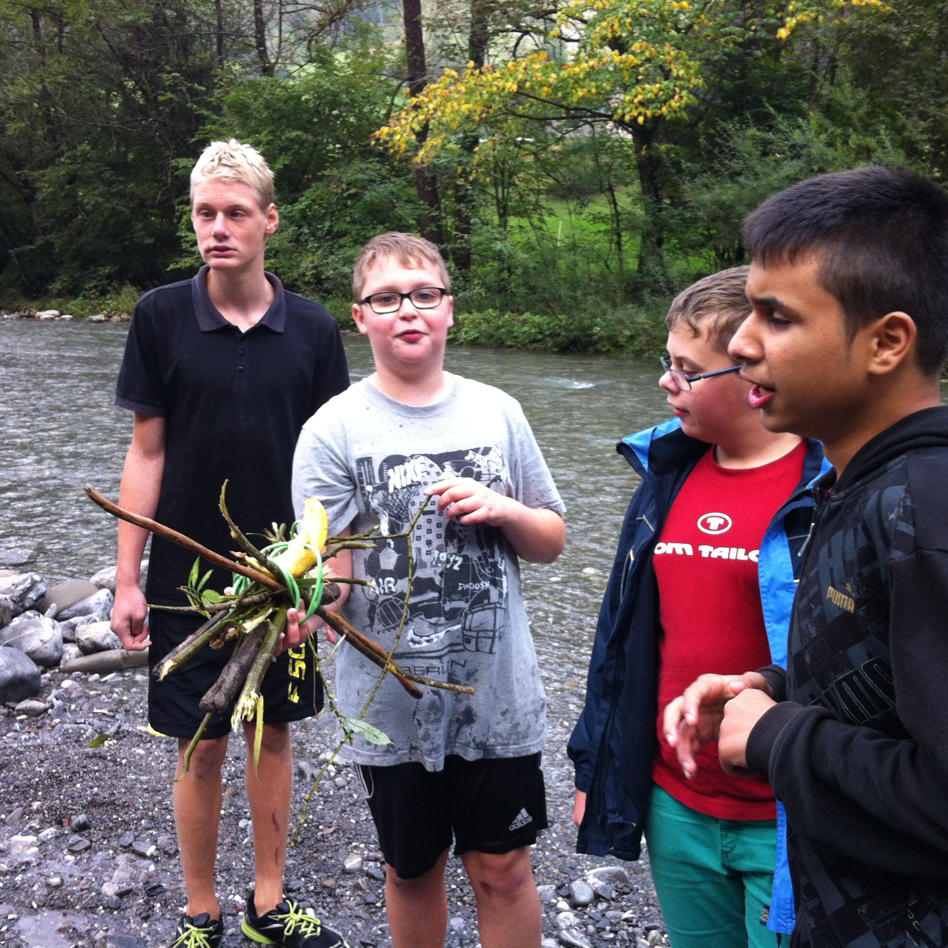 Mit den gebauten Booten fuhren wir dann ein Bootsrennen. Das Boot der Jungs war zwar schneller, dafür hatten die Ladys aber ein besser gestyltes Werk. Beide Gruppen erhielten also einen Preis. Obwohl das Wasser sehr kalt war und an manchen Stellen eine starke Strömung hatte, ist nichts passiert. Nur Batuhan ging einmal unfreiwillig im Bach Baden.