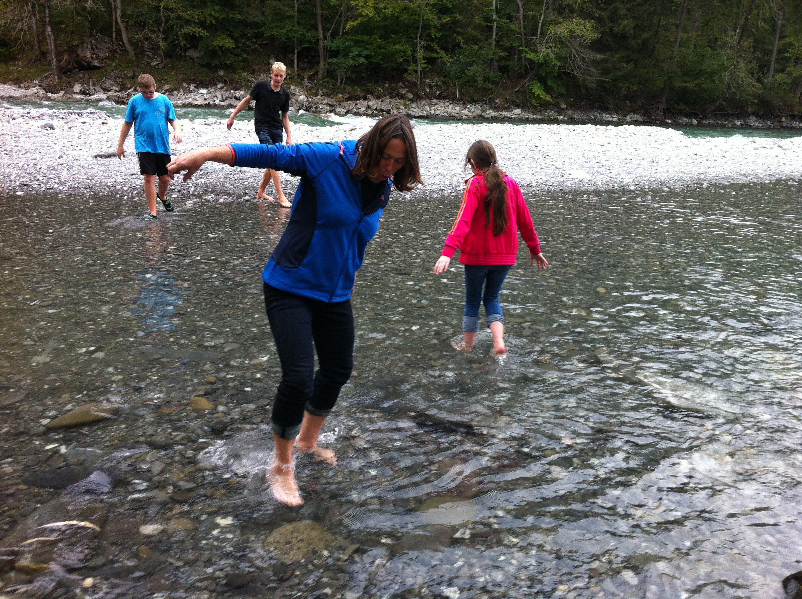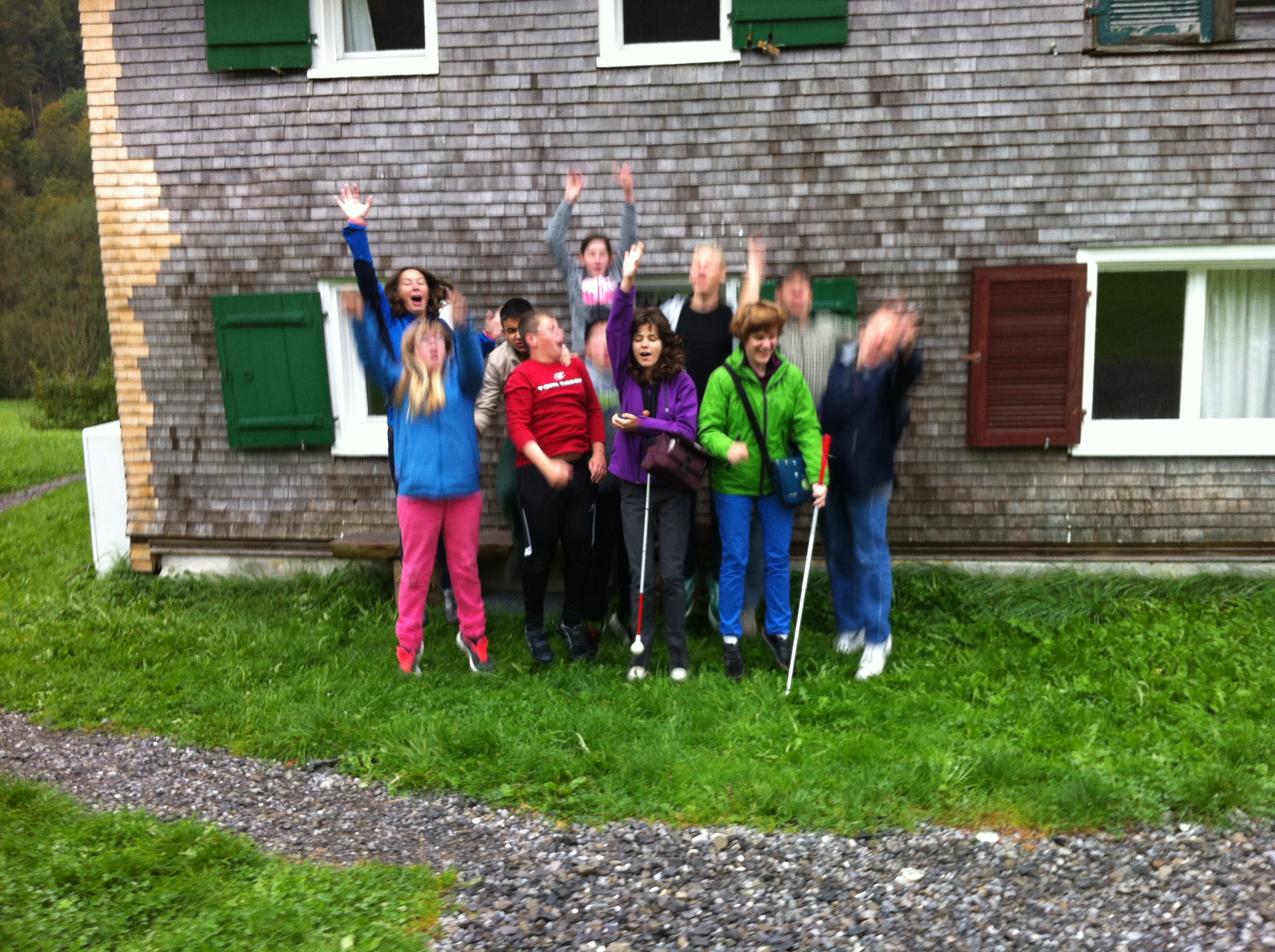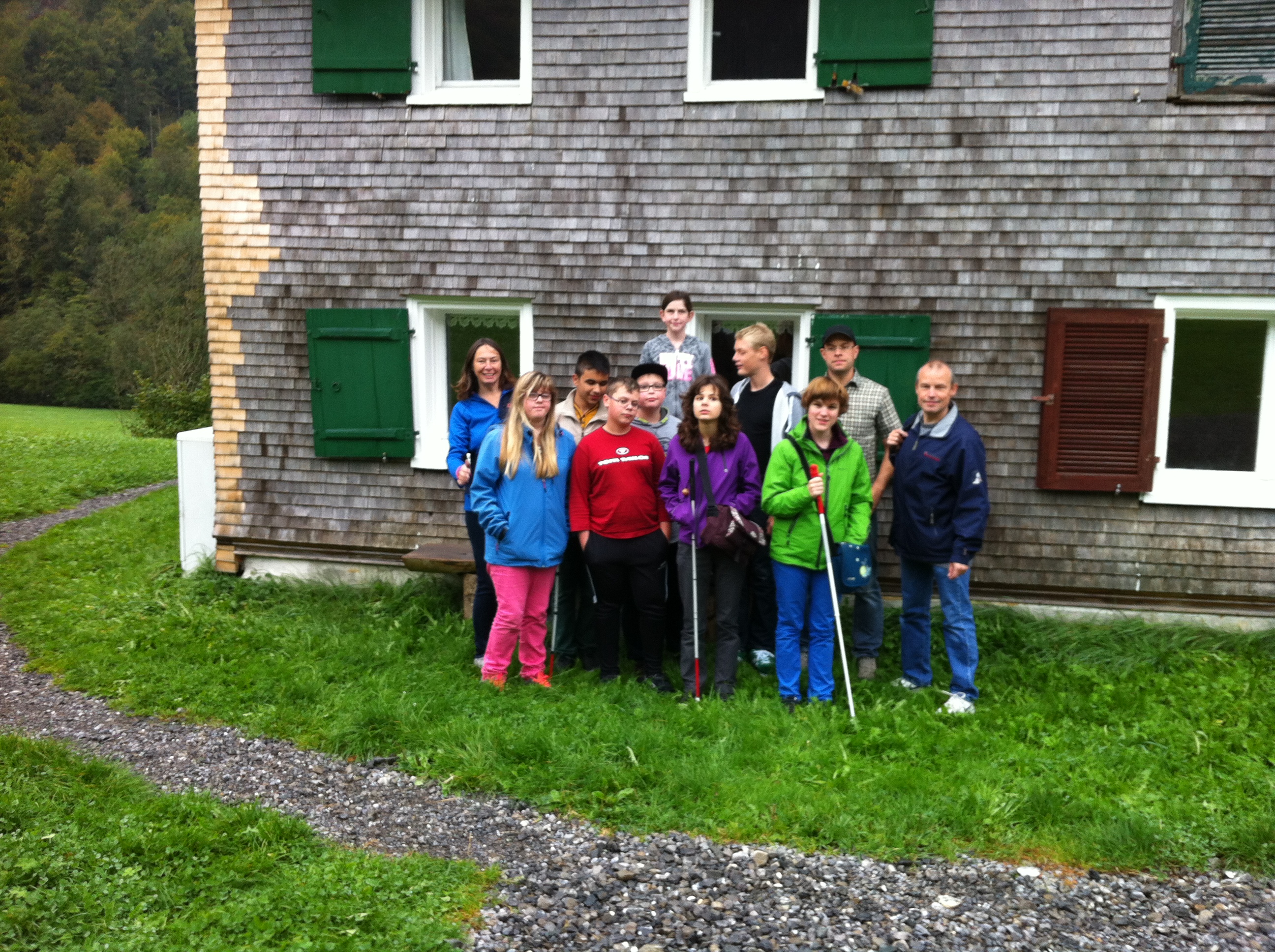 Wieder am Haus machten sich die Mädels und Frau Liebers dann auf zu einer ersten Erkundungstour. Später spülten wir das Geschirr vom Mittagessen und kochten Nudeln mit Tomatensoße. Die Vermieterin hatte jedem von uns ein Stück Kuchen spendiert, den wir als „Vortisch“ genießen wollten, und so kochten wir Kakao mit frischer Kuhmilch und legten für ein Weilchen unsere Arbeit nieder. Nach dem Essen kam dann wieder der Abwasch dran, den diesmal die blinden Mädchen erledigten, während die übrigen Kids draußen an der Bregenzer Ach oder vor dem Haus spielten.