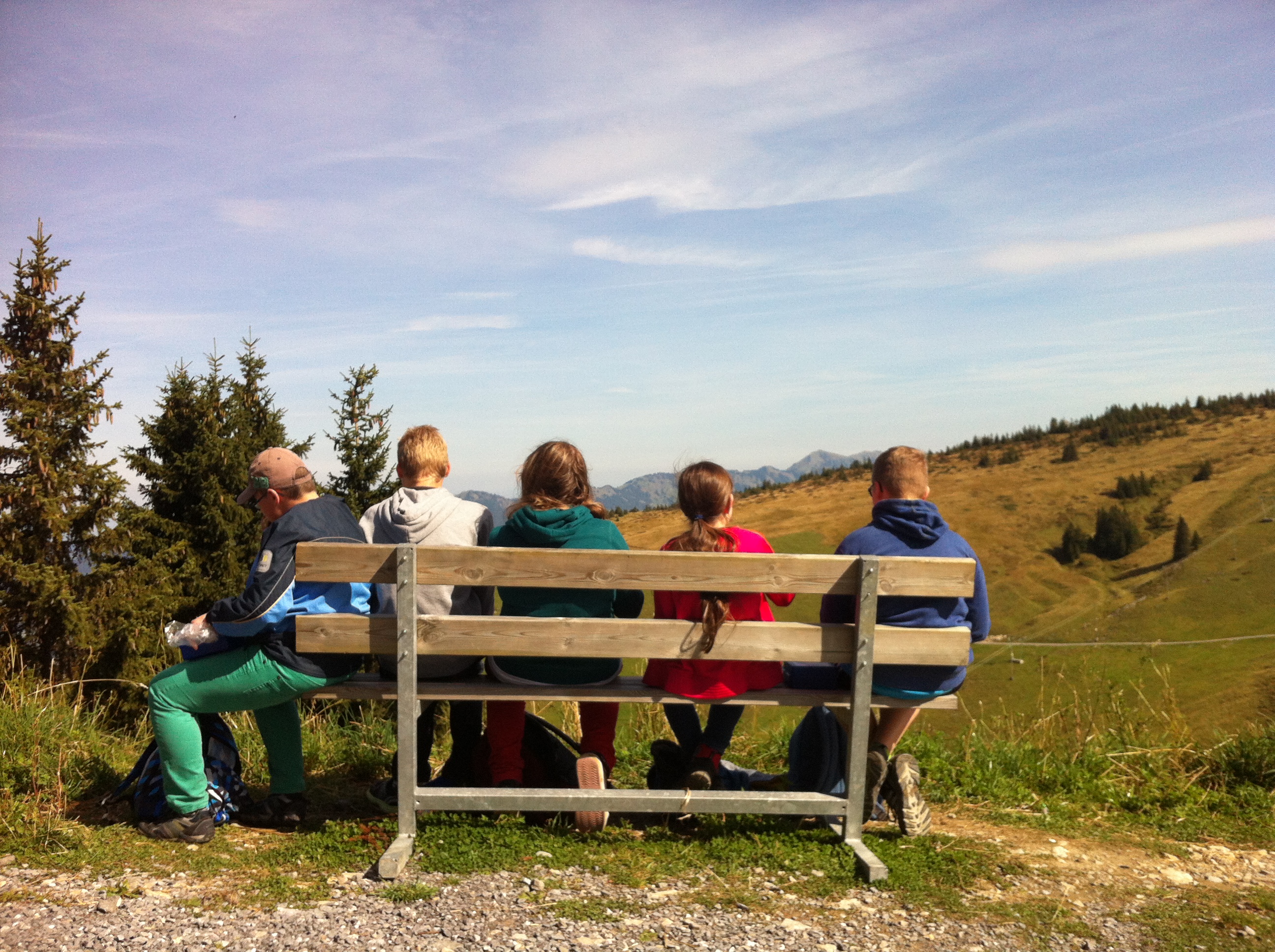 Am Dienstagmorgen trafen wir uns zu Schulbeginn nicht wie sonst im Klassenraum, sondern im Wirtschaftshof der Schloss-Schule Ilvesheim bei den Schulbussen. Wir luden alles ein und machten uns keine zwanzig Minuten später auf den Weg. Während der Fahrt (Fahrzeit ohne Pausen ca. 4,5 Stunden) wurde gegessen, geschlafen, gequatscht, gezockt oder Musik gehört. In Ulm machten wir eine Toilettenpause. Nächster Halt war das Haus der Vermieterin in Andelsbuch in Österreich.